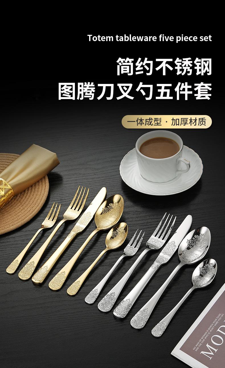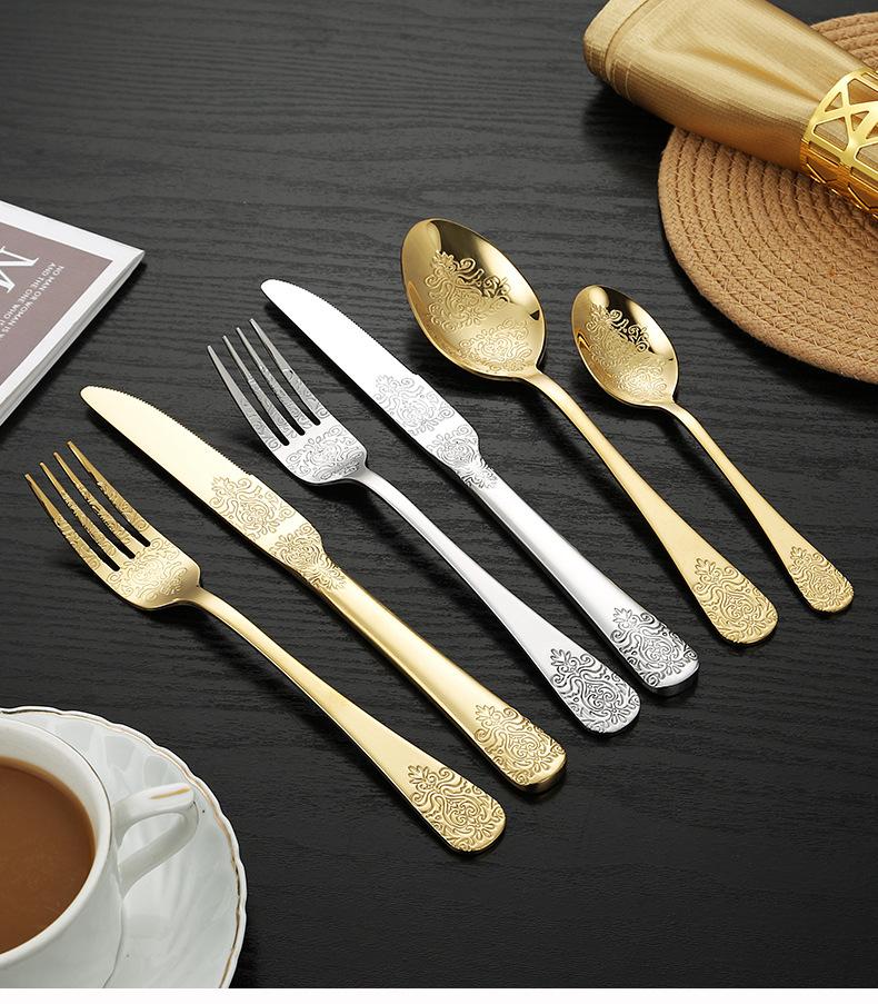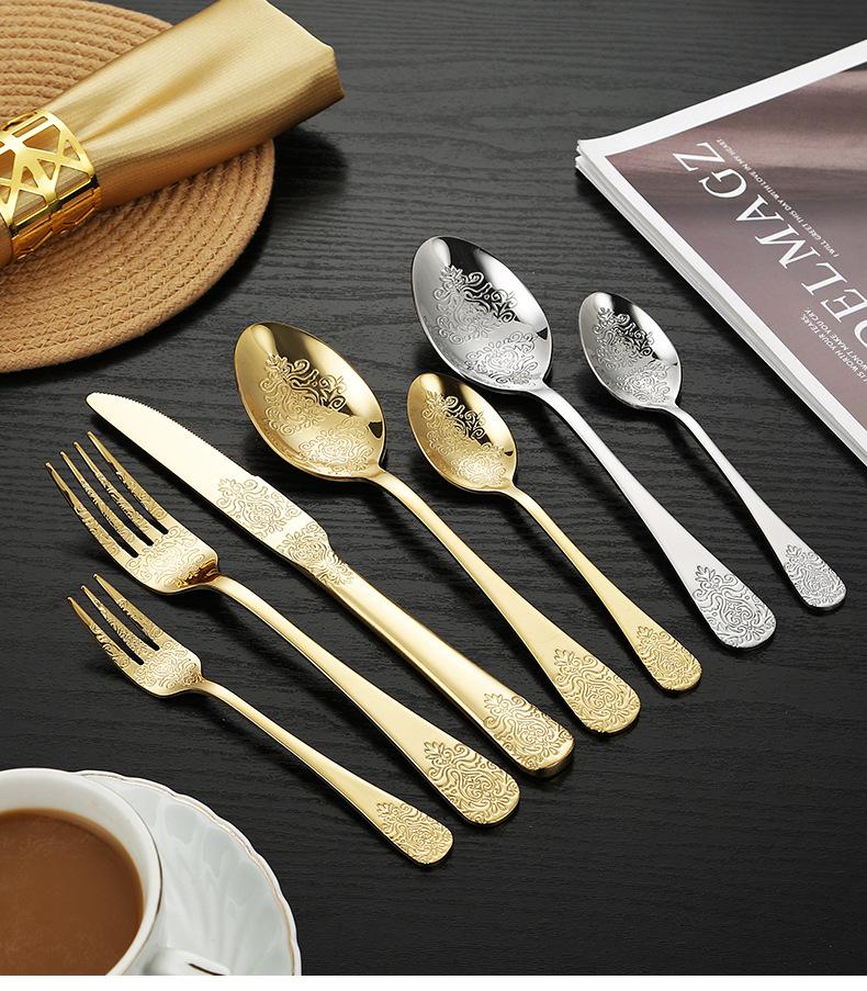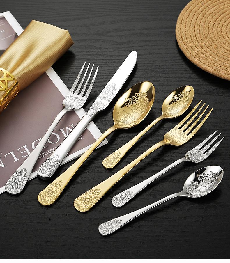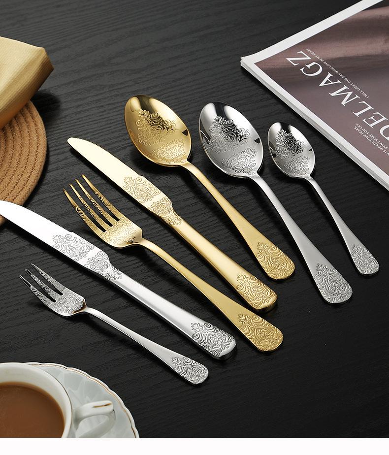 Cubiertos de Acero Inoxidable Patrón 1010, Cuchillo, Tenedor y Cuchara Vajilla Comida Occidental Retro Hotel Cuchillo para Bistec y Tenedor Tenedor para Té Cuchara para Té Juego de Caja de Regalo