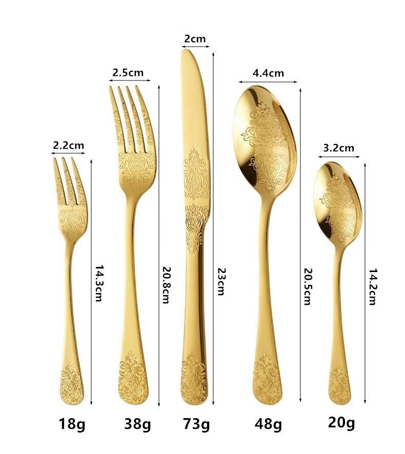 [silver] table knife, [silver] dinner fork, [silver] table spoon, [silver] teaspoon, [silver] tea fork, [gold]...