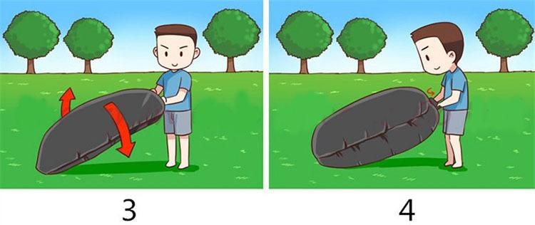 2: Mantén esta postura y corre unos pasos en línea recta para inflar.