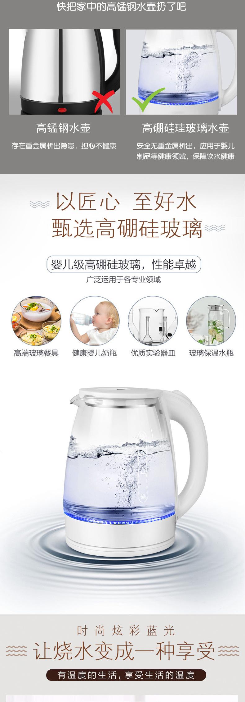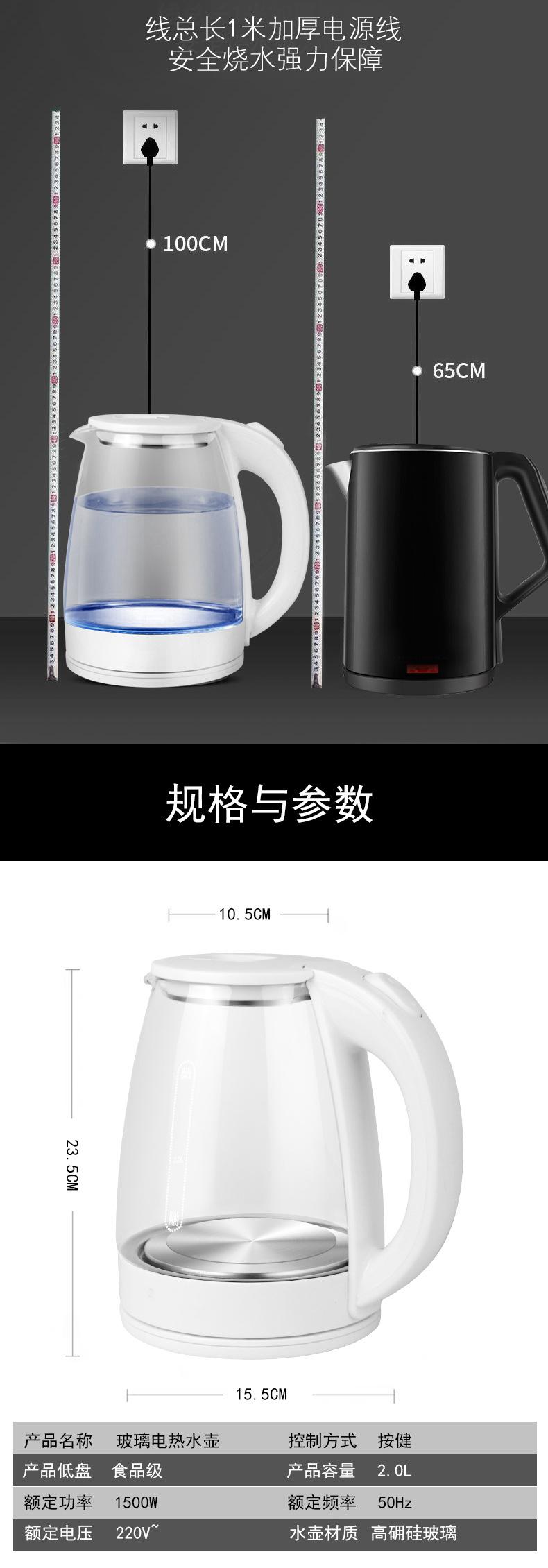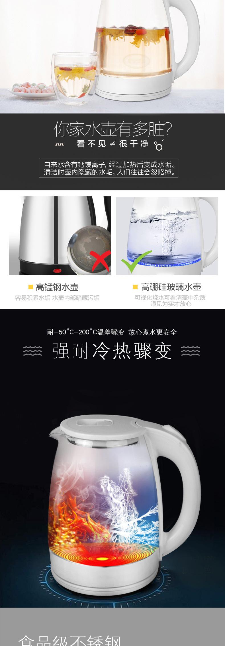 Hervidor eléctrico doméstico de gran capacidad, hervidor de vidrio con apagado automático, tetera de acero inoxidable 304 para hervir agua y salud