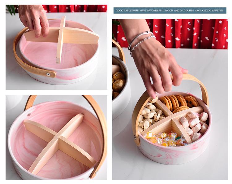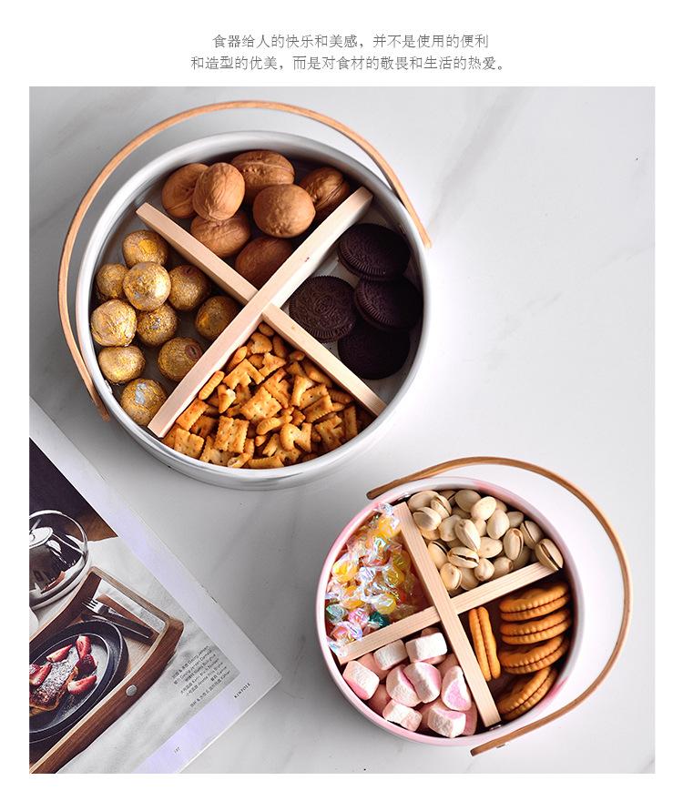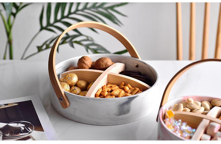 Plato de frutas de estilo nórdico, moderno, de cerámica, creativo, con asa, para sala de estar y hogar