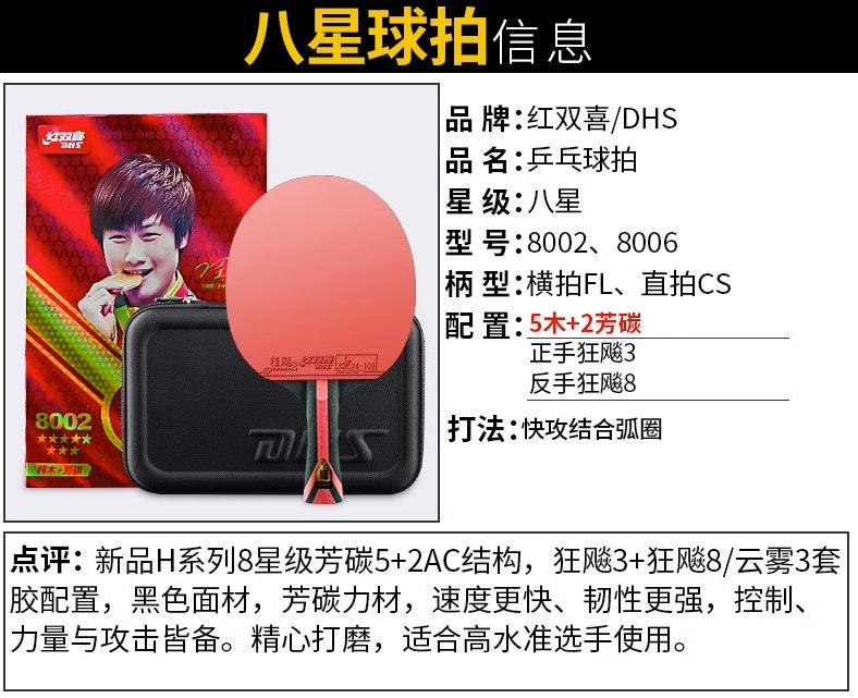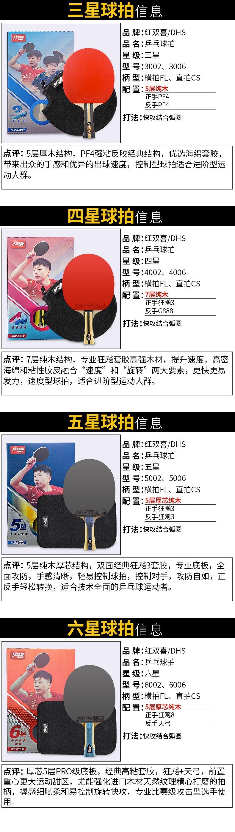 Paleta de Tenis de Mesa Roja Doble Felicidad Tres Estrellas Cuatro Estrellas Cinco Estrellas Profesional Individual Pat Genuina para Principiantes Mango Largo Pat Cruzado