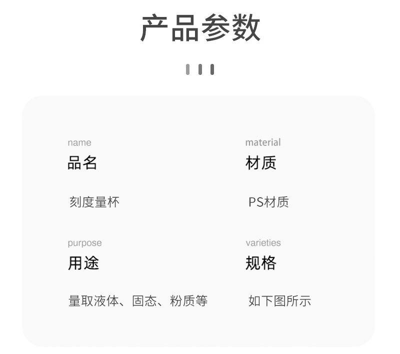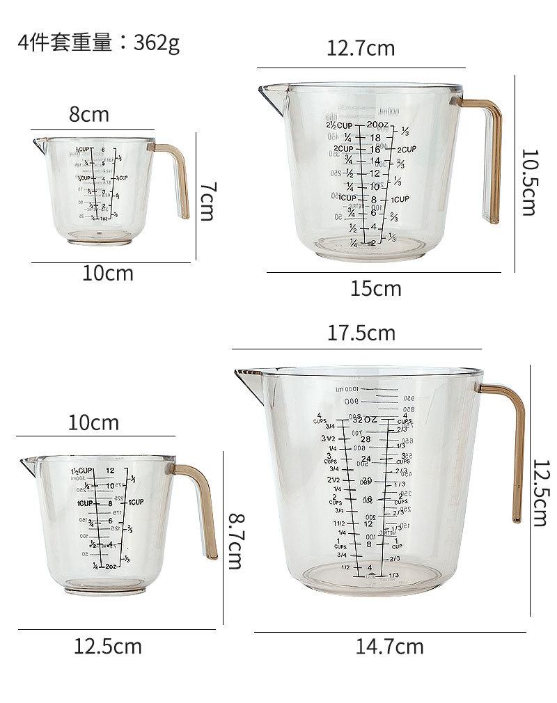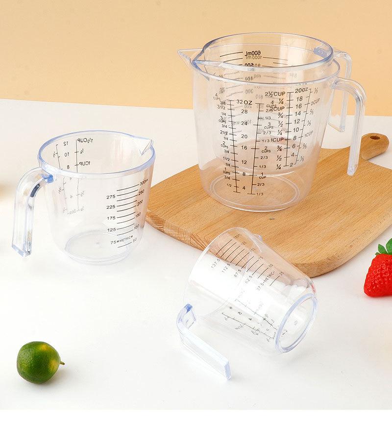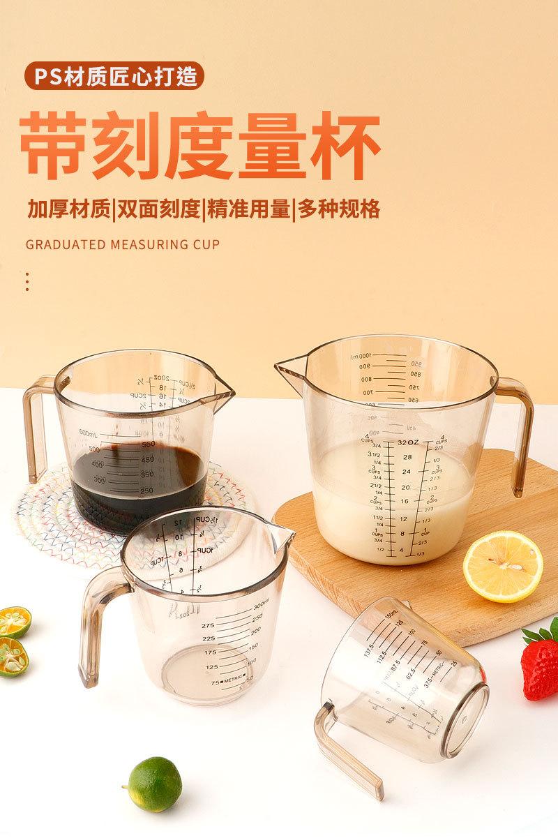Herramientas para hornear PS taza medidora de plástico con escala 150/300/600/1000ml taza medidora transparente suministro de origen