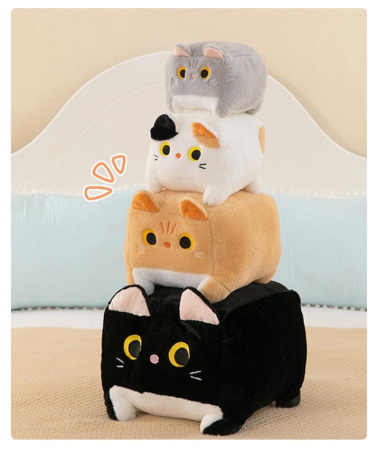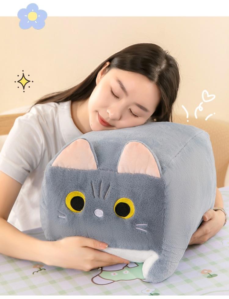 Nuevo juguete de peluche de gato cuadrado transfronterizo, muñeca de gato, almohada, regalo creativo para niños, venta al por mayor
