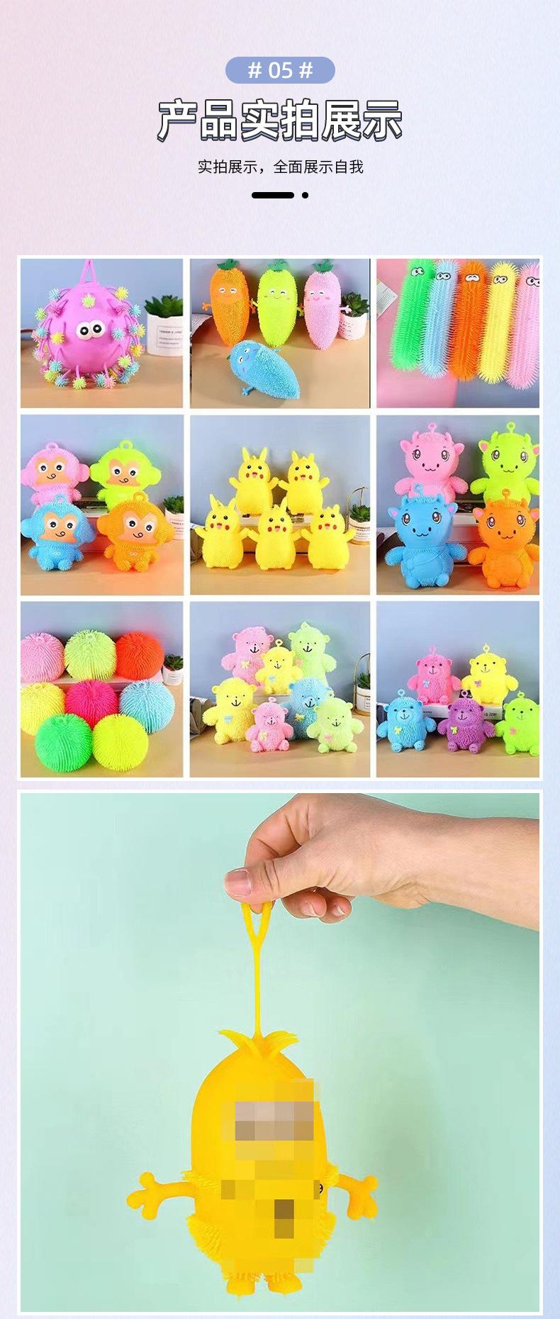 Juguetes de dibujos animados puesto luminoso juguetes para niños luminosos ventila flash bola de pelo juguetes electrónicos para empujar regalos