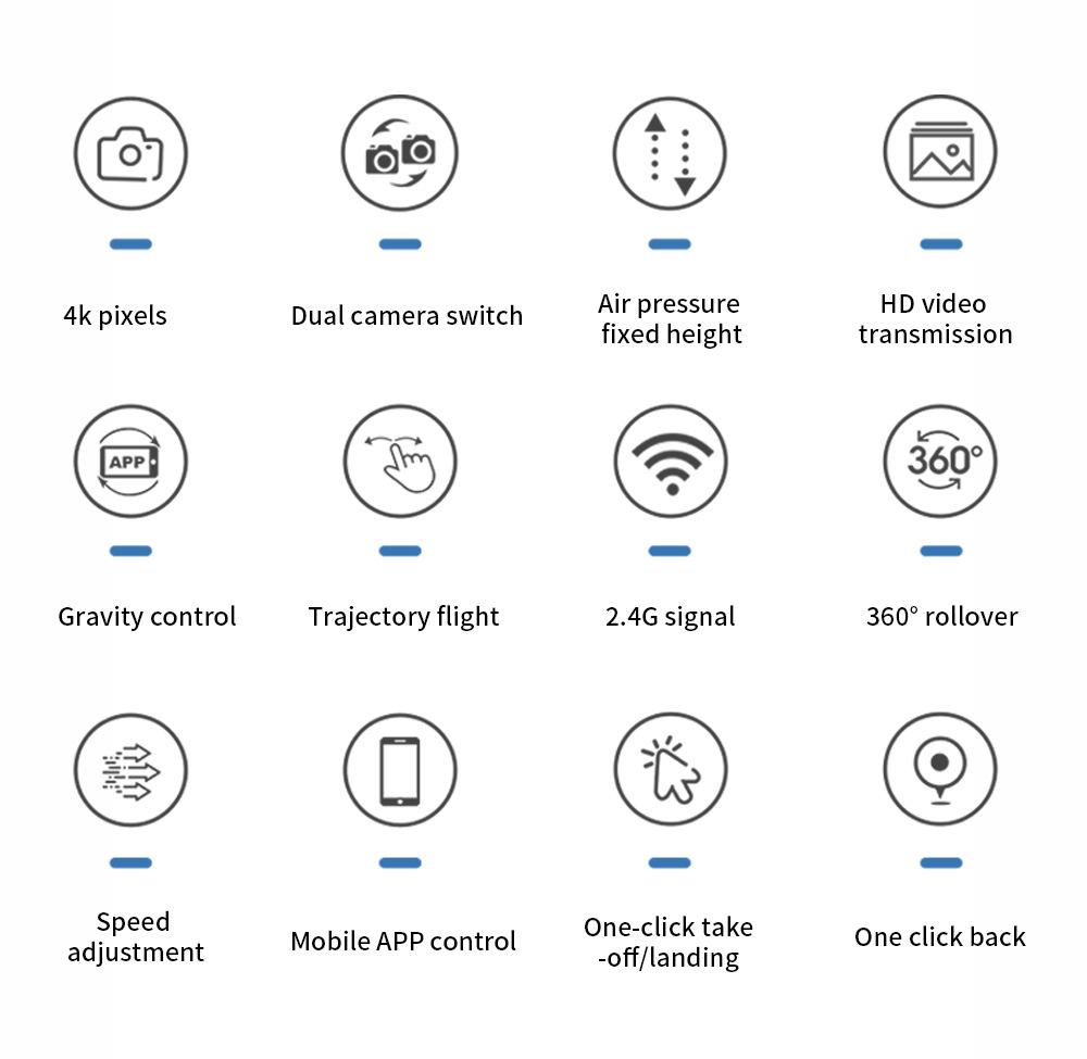 Mini folding, Forward, Handle remote control, Back, Fly left, Fly right, One-click takeoff and landing