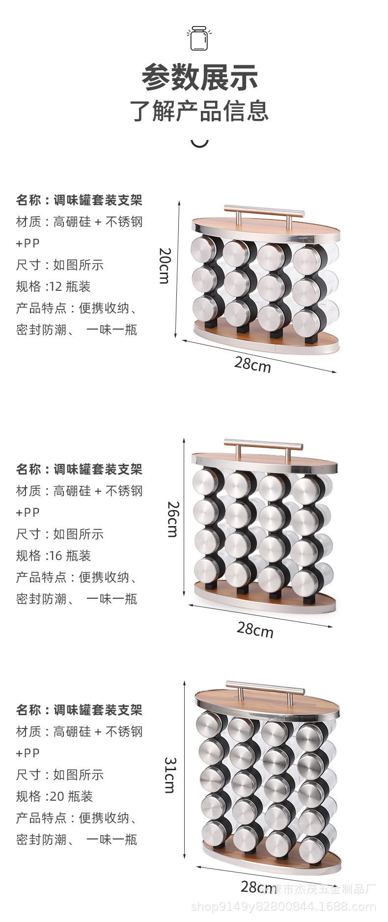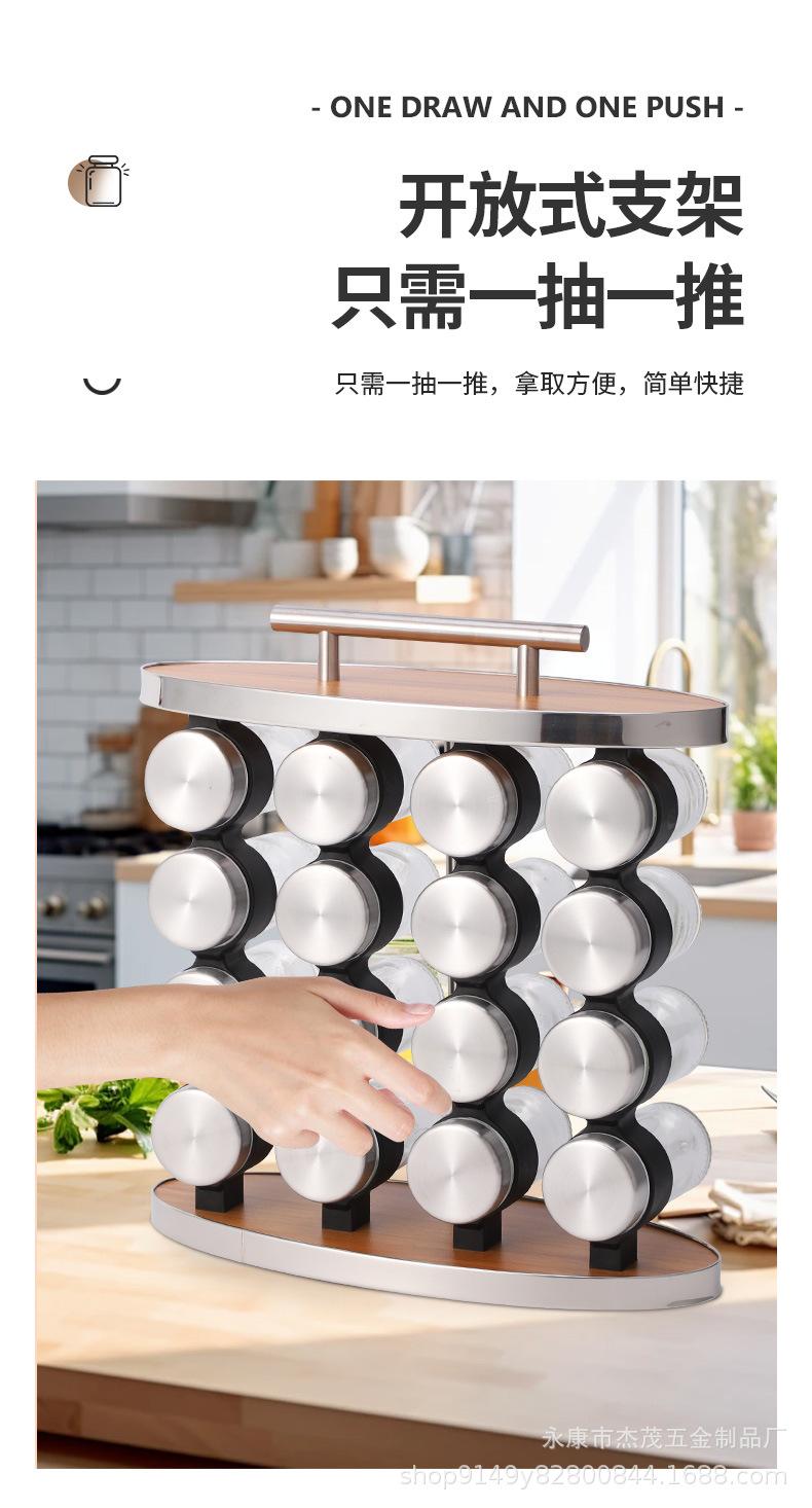 Nuevo Organizador de Cocina de Acero Inoxidable Bolso Largo Redondo Estante para Condimentos 12 Cabezales 16 Cabezales 20 Cabezales Juego Estante para Condimentos con Grano de Madera Personalización
