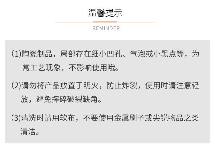 Atención: ¡Pedido por caja completa! Para pedidos menores a una caja completa, ¡solo se proporcionará reemplazo único por daño! ¡La calidad de envío del producto es grado A B! ¡Irregularidades de color local, puntos negros, porosidades, pequeñas protuberancias, etc. que no afectan el uso no se consideran defectos! Para grado A puro, ¡contacte al servicio al cliente para compra adicional! (Detalles se refieren a los estándares nacionales de calidad para vajilla de cerámica)