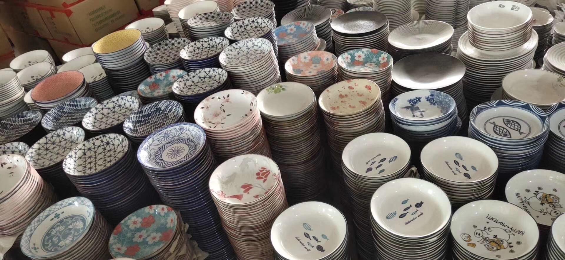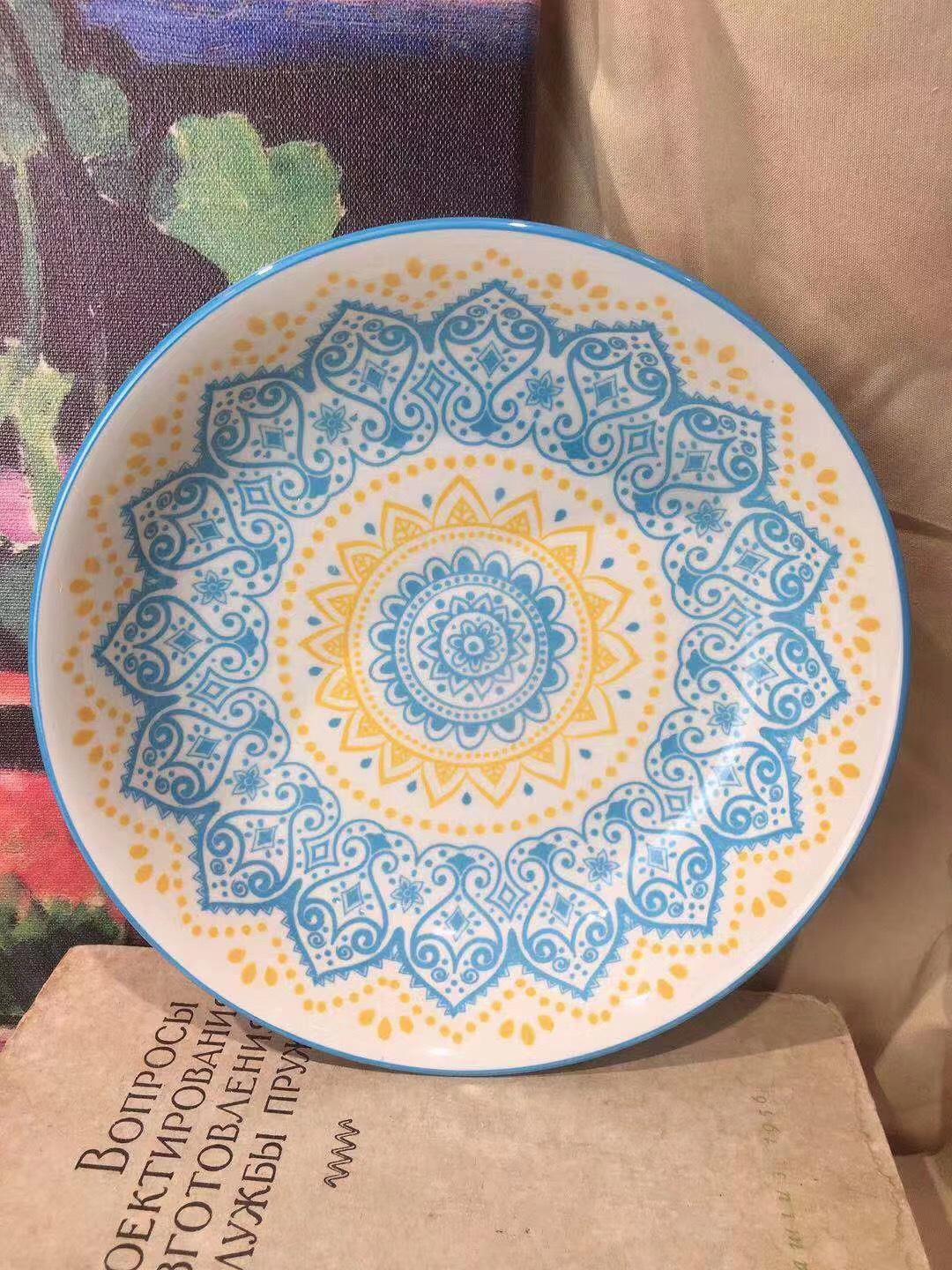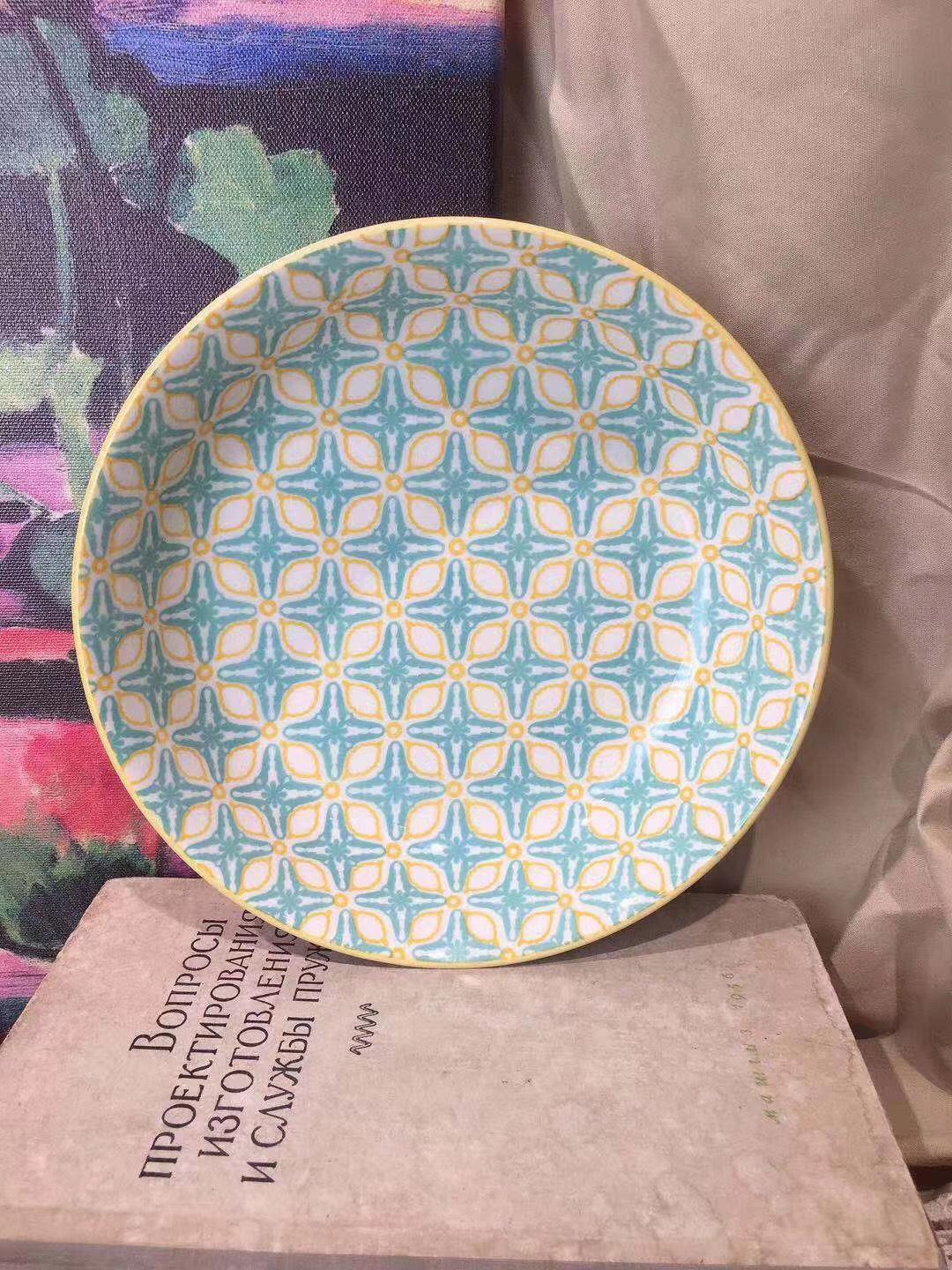 Plato de 8 pulgadas, plato de arroz, plato de fruta, vajilla de cerámica para el hogar, venta al por mayor, impresión a máquina, cerámica japonesa, vajilla de cerámica de estilo nórdico