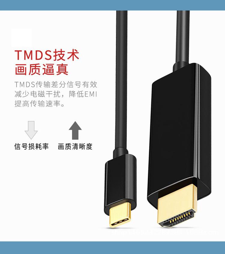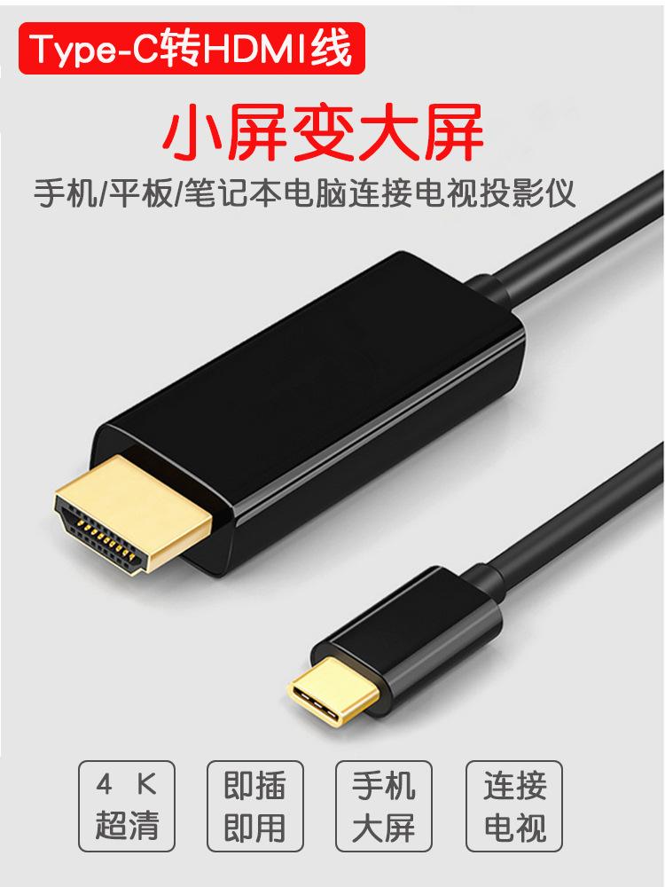 Los fabricantes suministran cable adaptador tipo C a HDMI 1.8 M 4K teléfono móvil conectado a TV proyector con cable de pantalla USB3.1