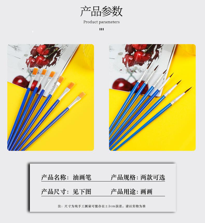 17cm flat brush, 16.5cm pointed paintbrush (black hair), 12cm black flat brush, 16.5cm pointed paintbrush (yel...