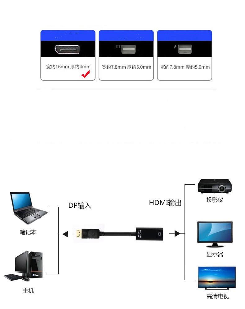DP to HDMI-4K/X12 small style, MiniDP to HDMI-4K/X14 black small head, DP to HDMI-1080P/X15 Big Head, DP to HD...