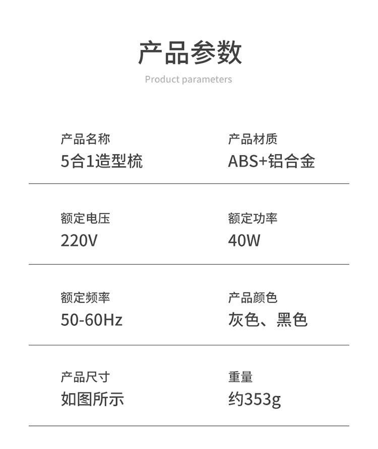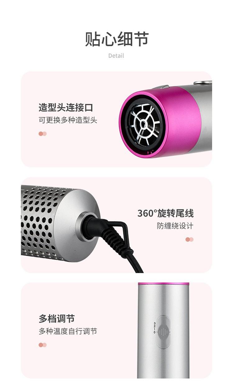 Secador de pelo multifunción cinco en uno sin escobillas, con iones negativos, calentamiento directo, peine, rizador, peine alisador