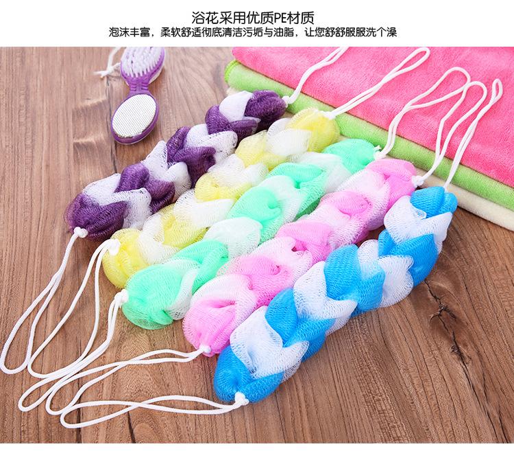 Bola de baño grande tira para frotar la espalda para hombres y mujeres, tira de baño para adultos, tira extendida para la espalda que no se afloja, toalla de baño, flor de baño