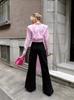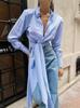 Nuevo Diseño Camisa Rayada Francesa con Cordones para Mujer Top Corto Interior de Manga Larga Ropa de Mujer para Ir al Trabajo