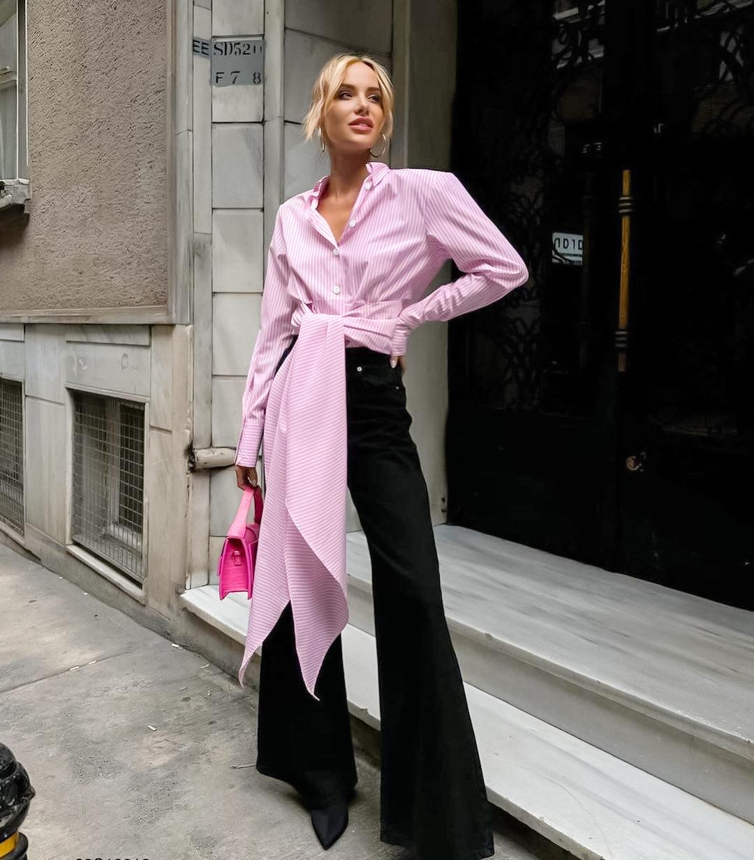 Compra Nuevo Diseño Camisa Rayada Francesa con Cordones para Mujer Top Corto Interior de Manga Larga Ropa de Mujer para Ir al Trabajo al por mayor en Joom.pro