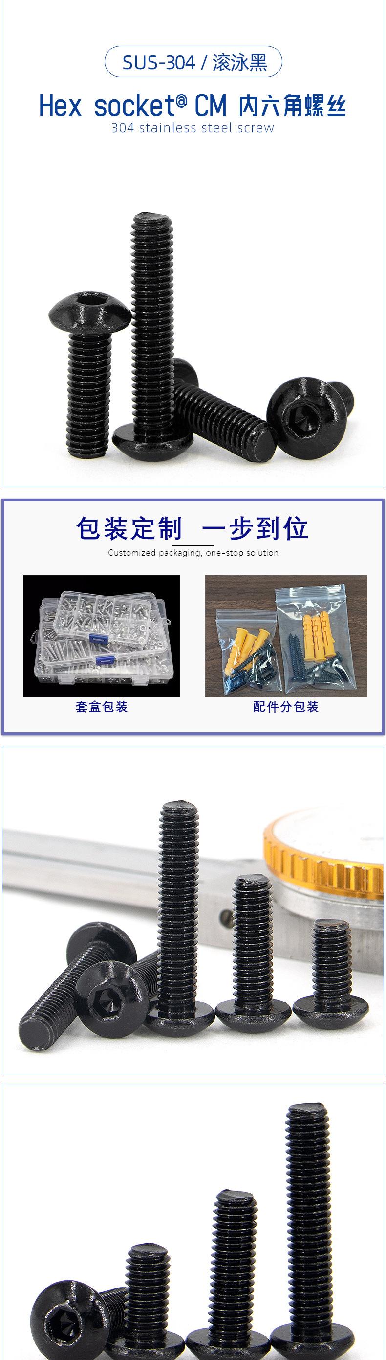 Acero Inoxidable 304 Rodante Cabeza Redonda Negra Tornillo de Zócalo Hexagonal ISO7380 Tornillo Hexagonal de Copa Redonda M2-M10