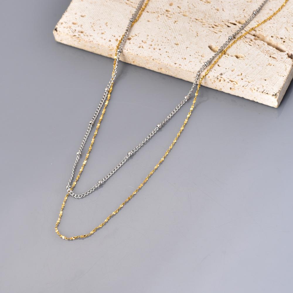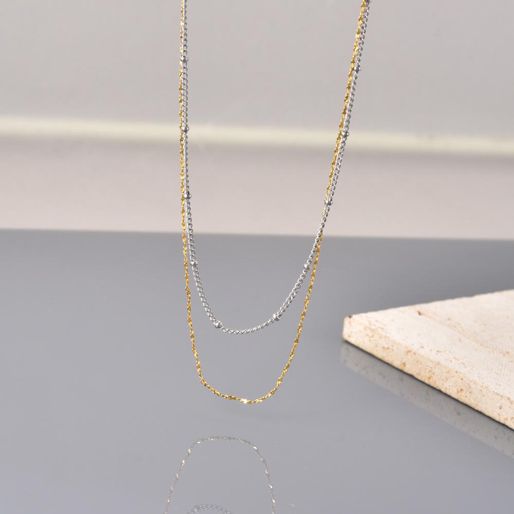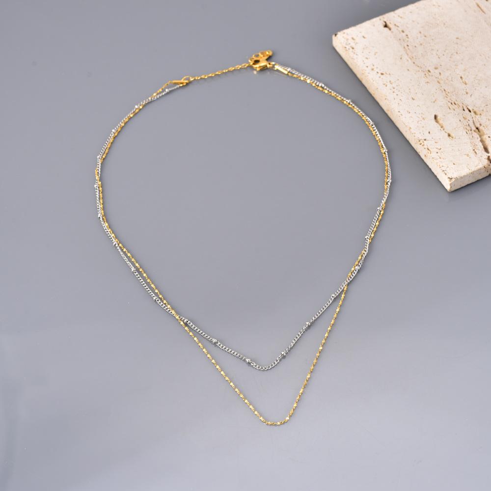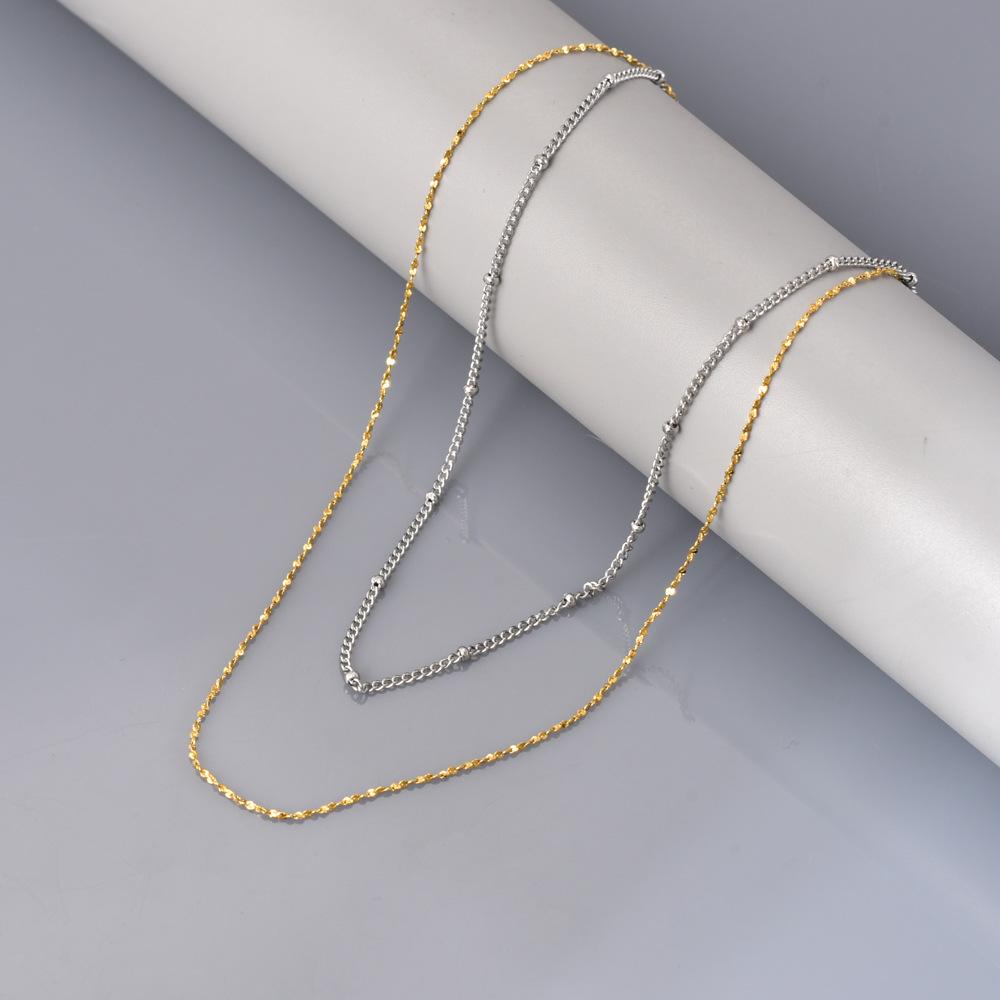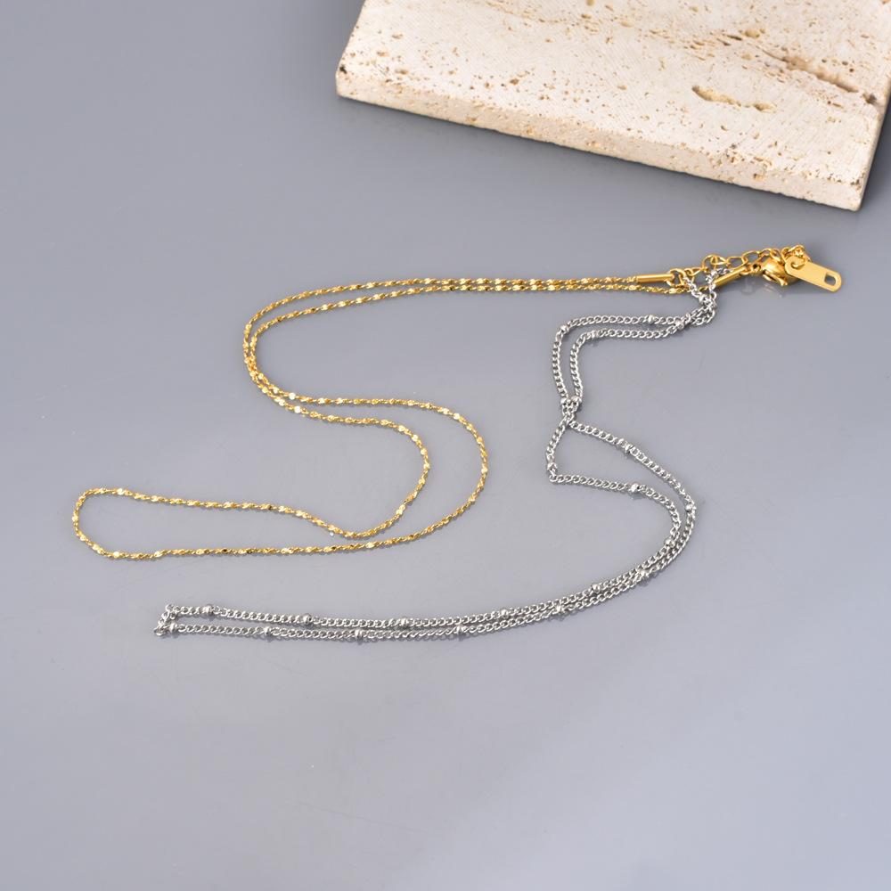 Moda japonesa y coreana cadena simple de paniculata lisa apilada para usar mezclar y combinar oro de 18 quilates temperamento diario acero inoxidable cadena clavicular