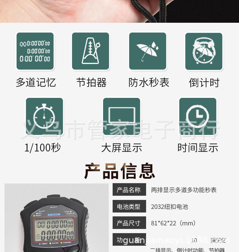 Cronómetro deportivo de dos filas con 10 funciones para entrenamiento de atletismo, competición de carrera, árbitro, cronómetro electrónico digital resistente al agua.