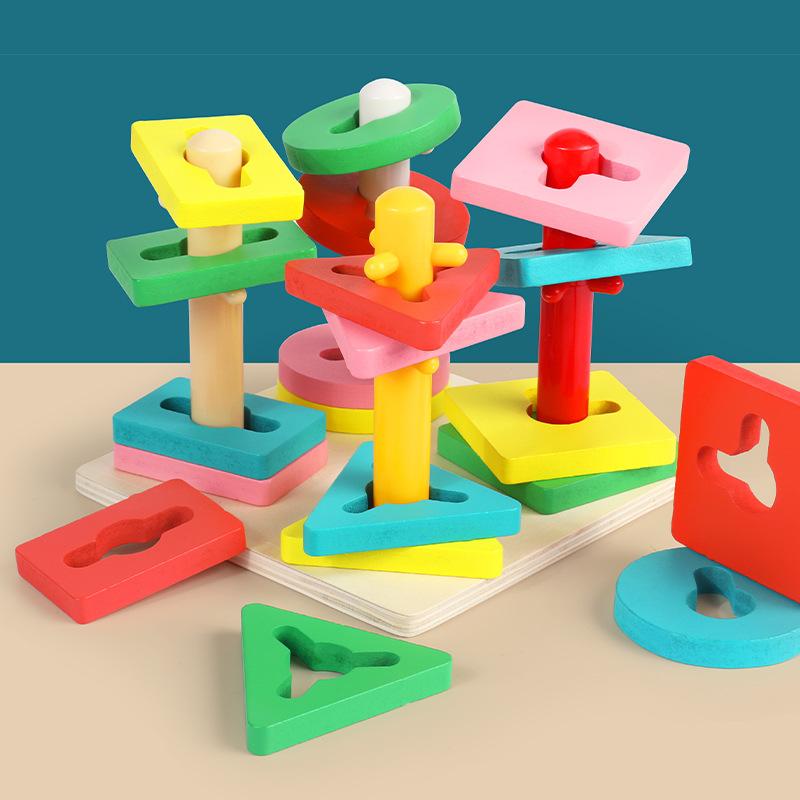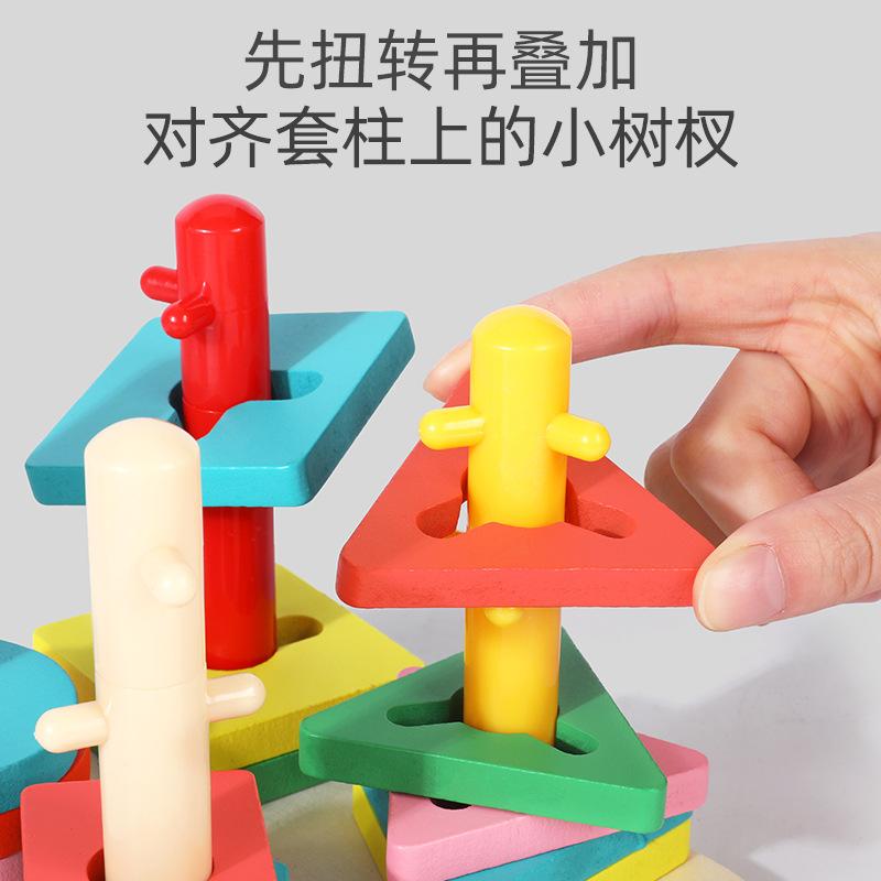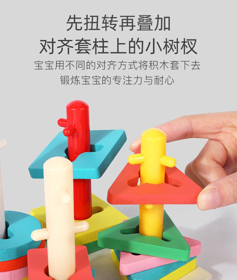 Bolas de madera inteligencia cuatro juegos de bloques de construcción de forma geométrica de columna color cognición educación temprana juguetes educativos de iluminación de madera
