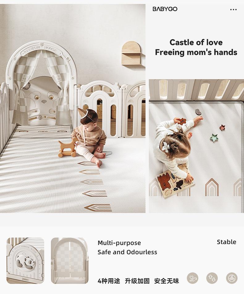 BABYGO Valla de Juego Panda Arcoíris Valla de Protección para Bebés Tapete de Gateo Bebé Interior Hogar Sala de Estar Piso
