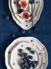 Plato de postre con patas de madera azul y blanca francesas, plato de postre de cerámica vintage azul fresco, plato de cena en stock, venta al por mayor