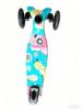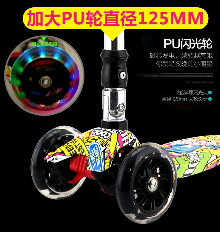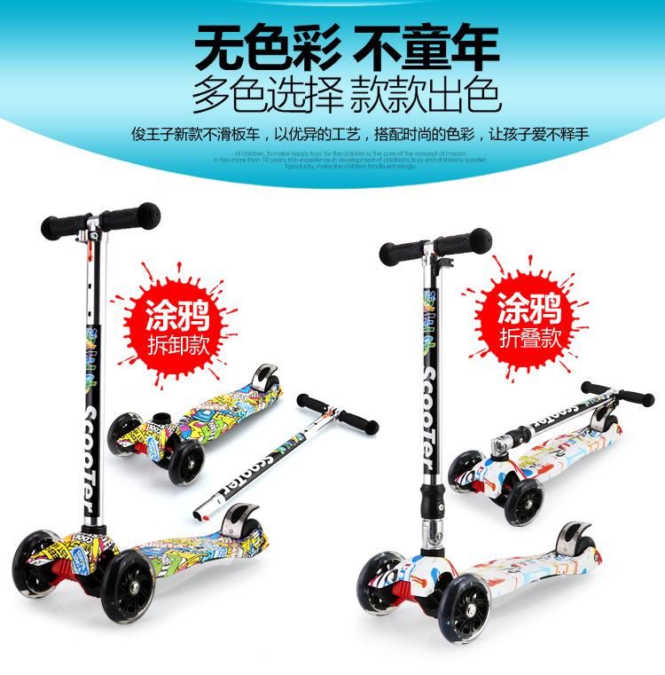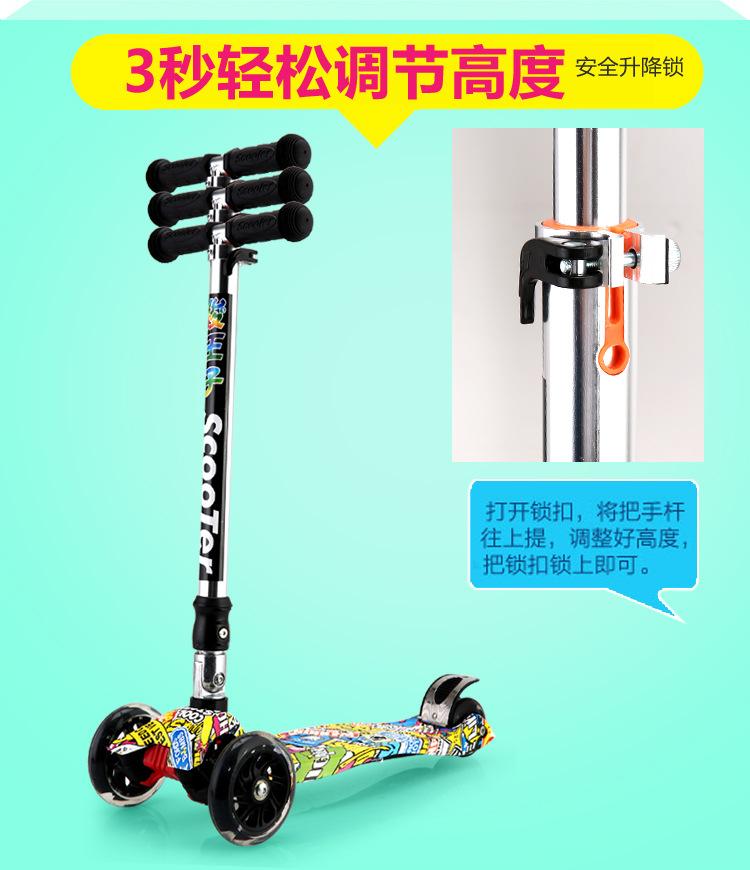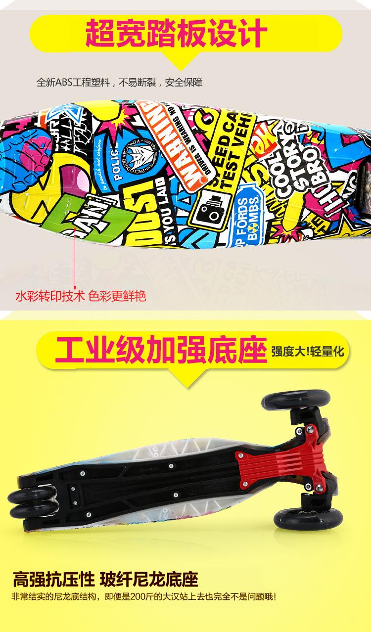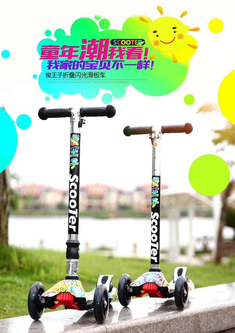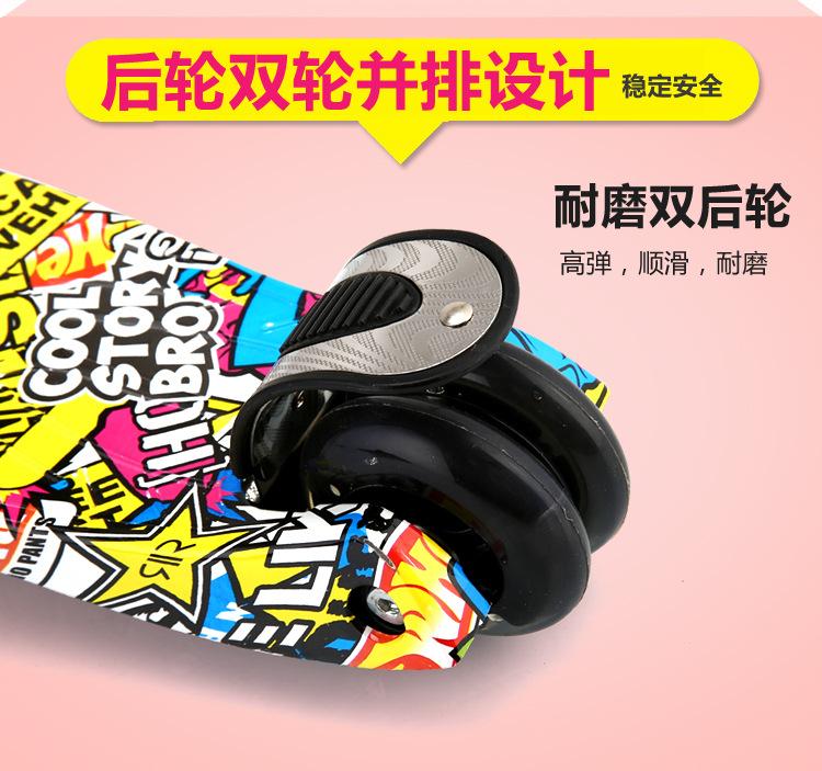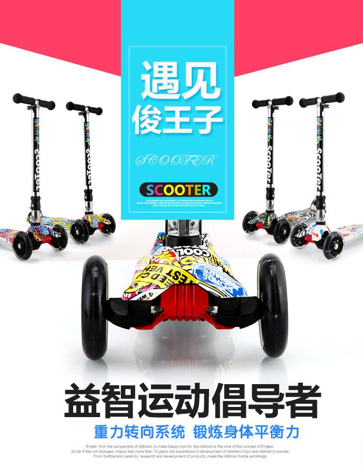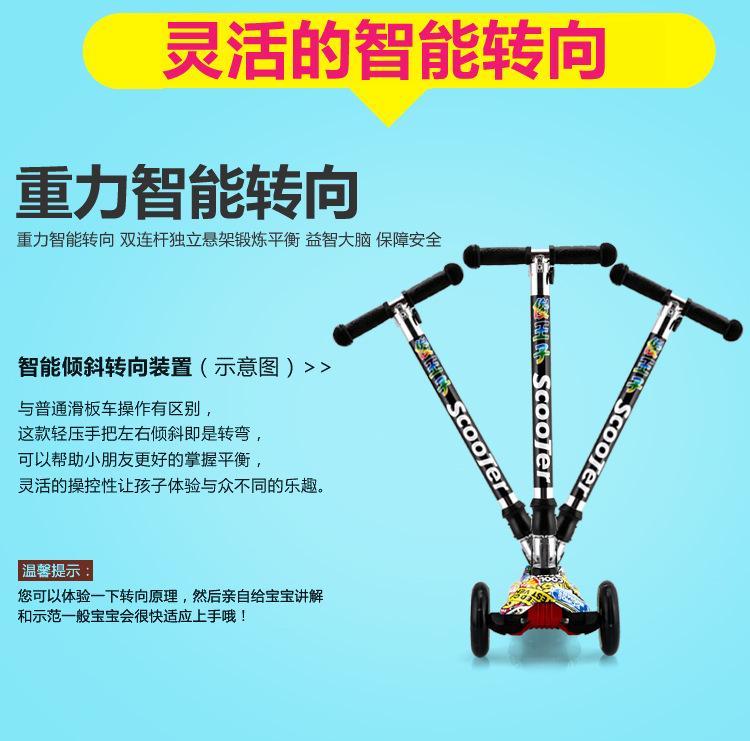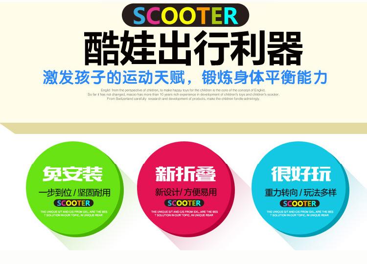 El scooter está diseñado con ruedas delanteras y traseras, y tiene dispositivos especiales de dirección y frenado. Utiliza la gravedad para controlar la dirección de viaje. Cuando el manillar se inclina hacia la derecha, la polea gira a la derecha, y viceversa, gira a la izquierda. Cuando se pisa la cubierta del freno trasero, la polea deja de moverse inmediatamente. Girar y frenar son fáciles de controlar.