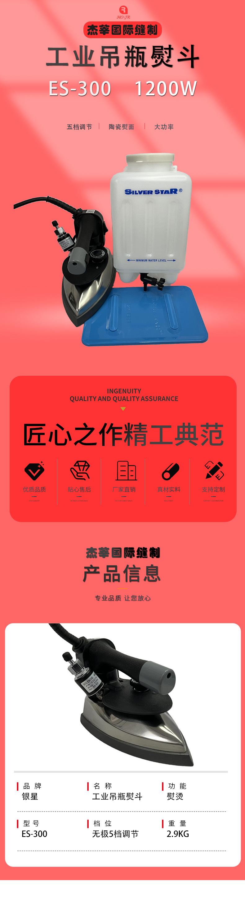 Plancha Eléctrica Industrial de Vapor con Botella Silver Star Es-300 Plancha de Alta Potencia para Ropa Limpieza en Seco Doméstico Plancha de Botella