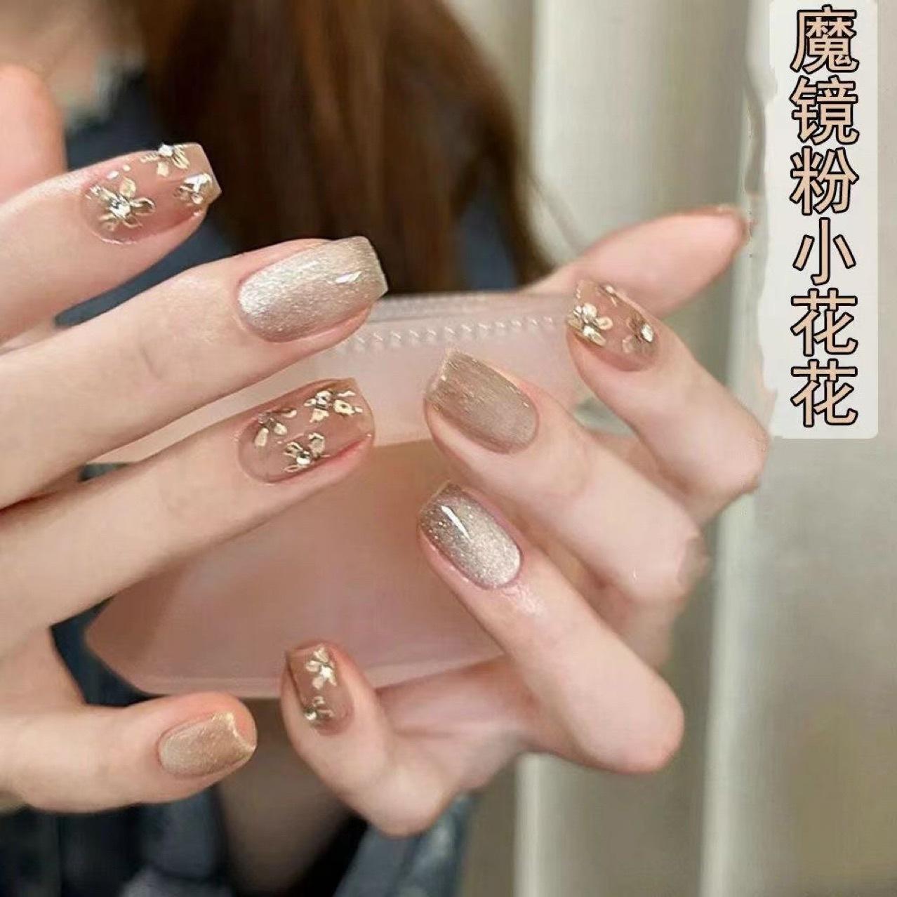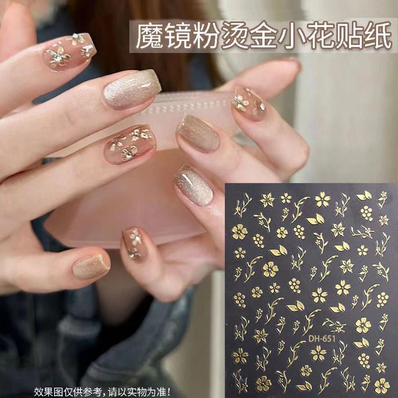 Polvo de espejo mágico famoso en internet pegatina de arte de uñas de flores pequeñas calcomanía de uñas vintage decoración japonesa de arte de uñas rosa bronceado