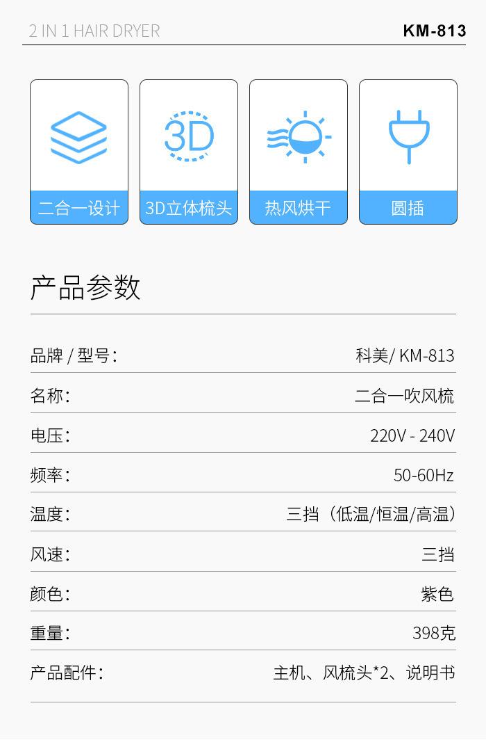 Peine de aire caliente multifuncional Komei KM-813 para cabello liso, de doble uso, para Amazon.