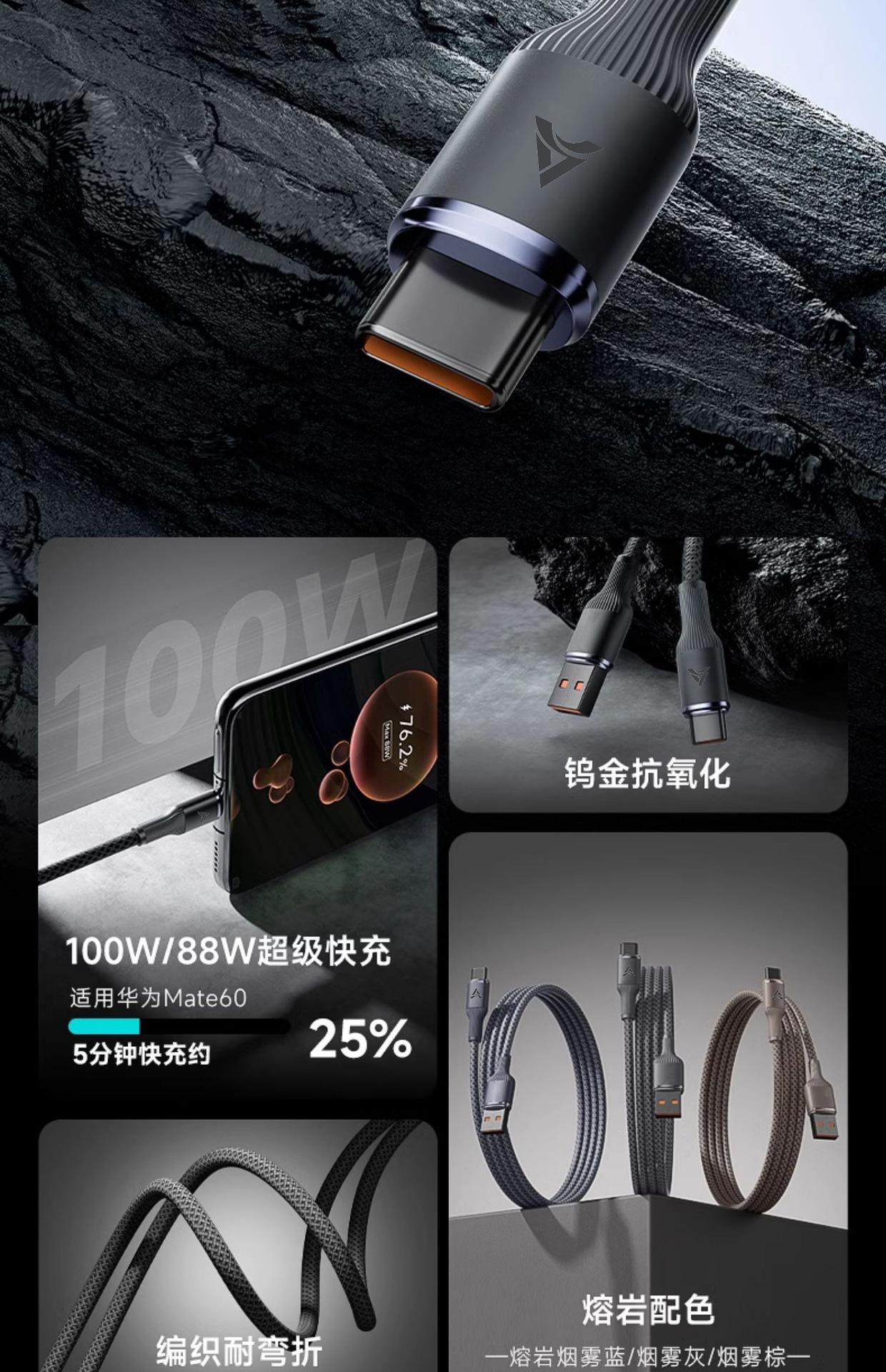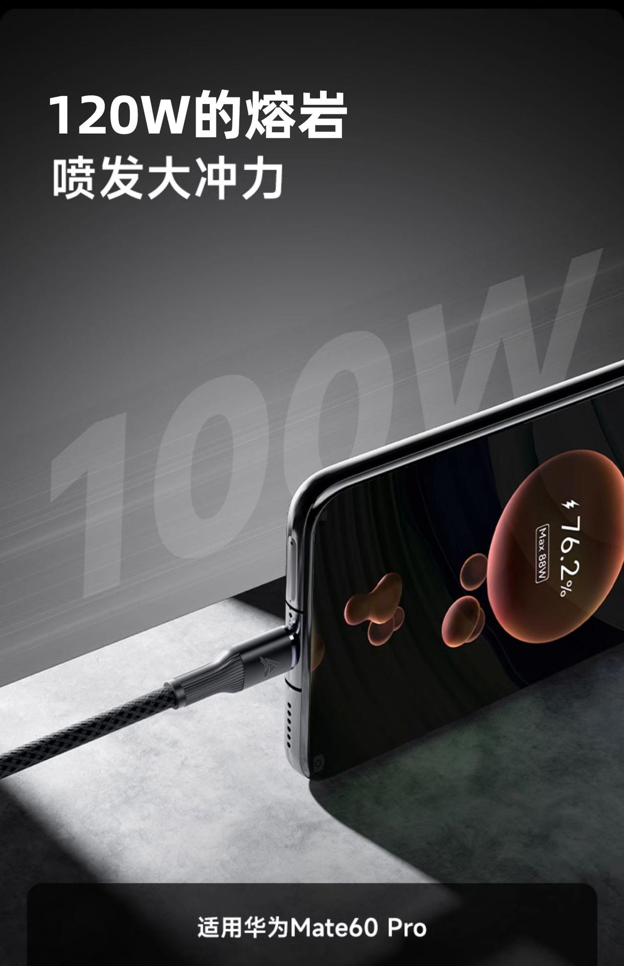 Cable de carga trenzado superrápido tipo C de 120 W y 6 A para Huawei Mate 60 Pro, cable de datos de carga rápida transfronteriza.