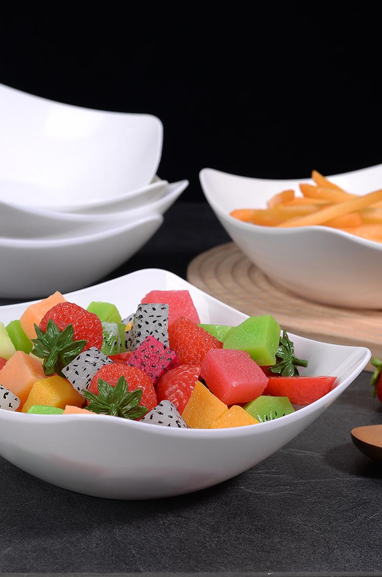 Hogar Blanco Puro Cuatro Esquinas Plato Tazón Nórdico Alto Valor de Color Platos Fríos con Ensalada Cuadrado Pie Esquina Arroz Sopa Tazón Plato