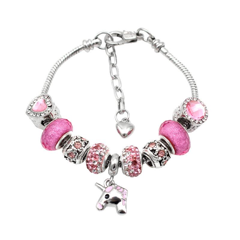 Amazon Nuevo Producto Deslumbrante Pulsera de Cuentas de Cristal Colorido DIY Joyería Infantil Unicornio Lindo Set de Caja de Regalo