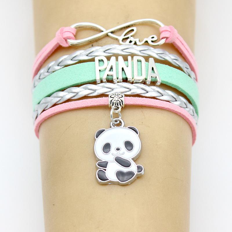 2020 Nuevo Tejido Hecho a Mano Amor Infinito PANDA Panda Colgante Charm Pulsera Tejida
