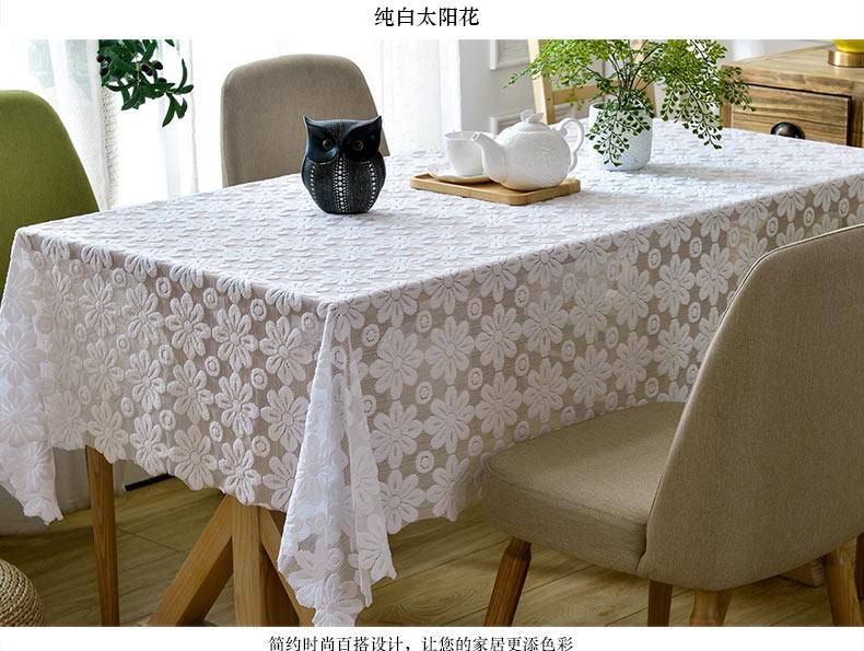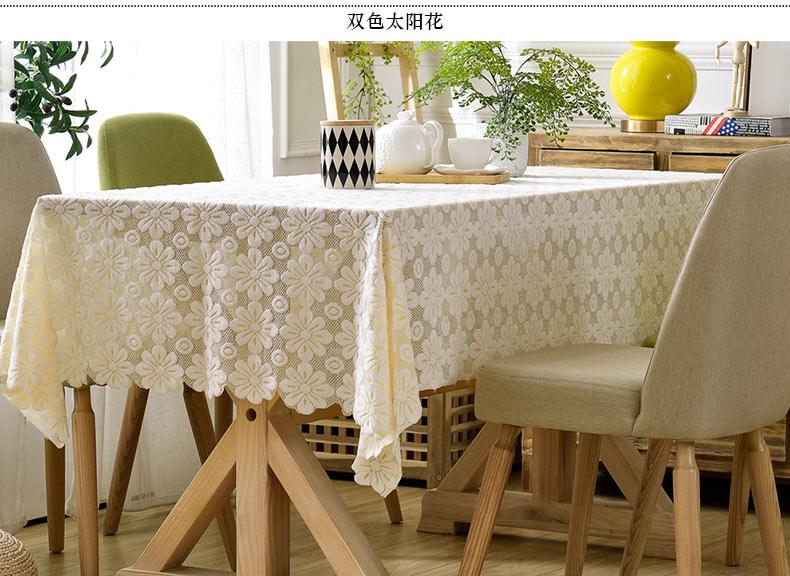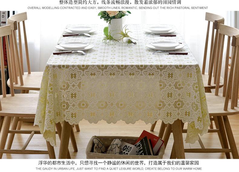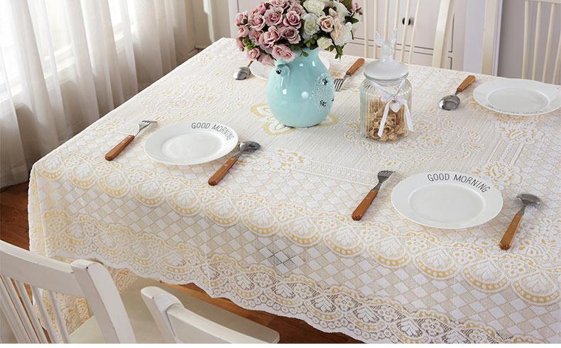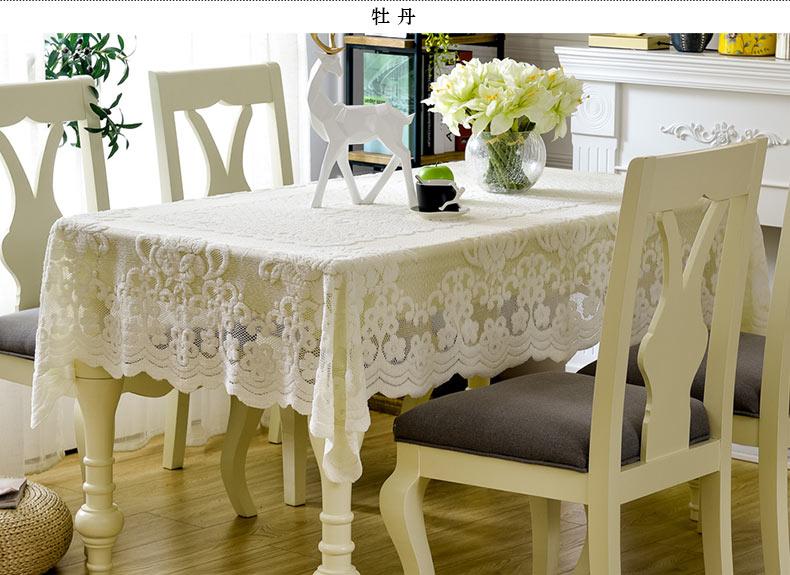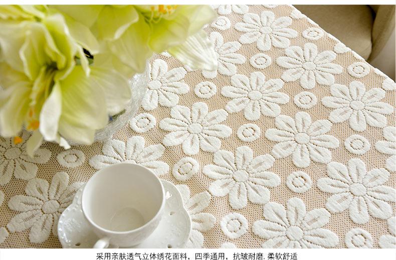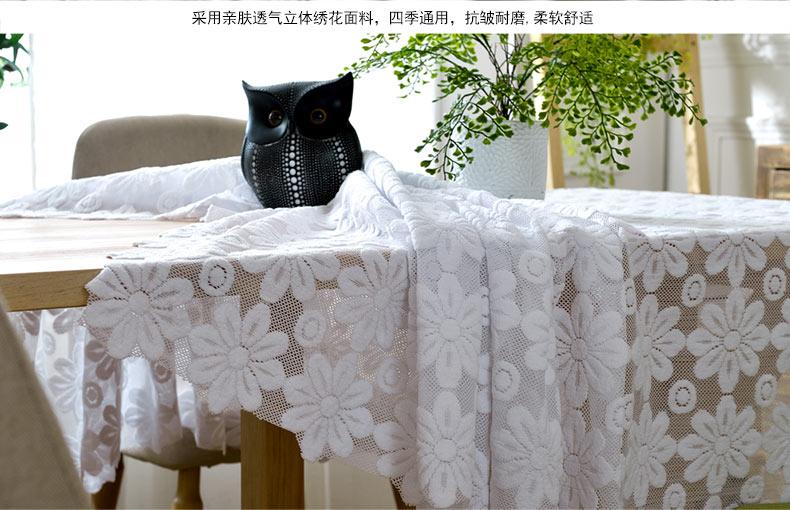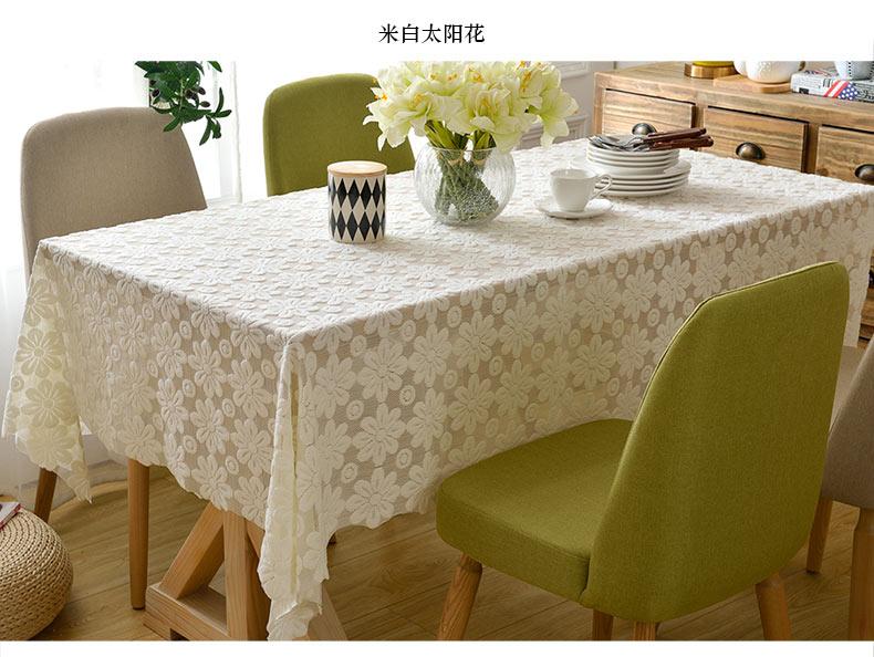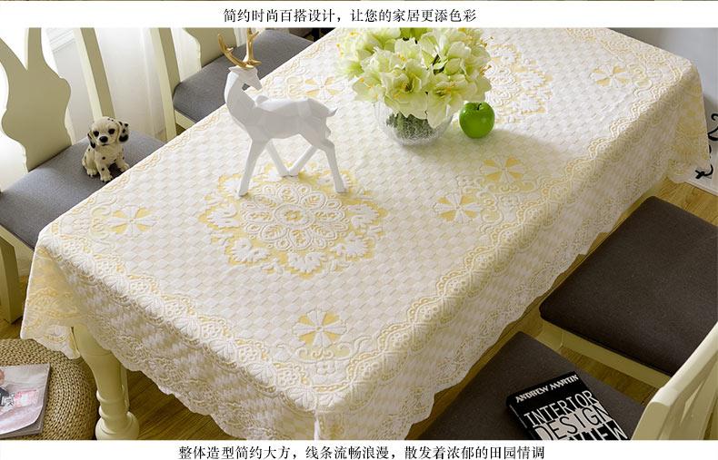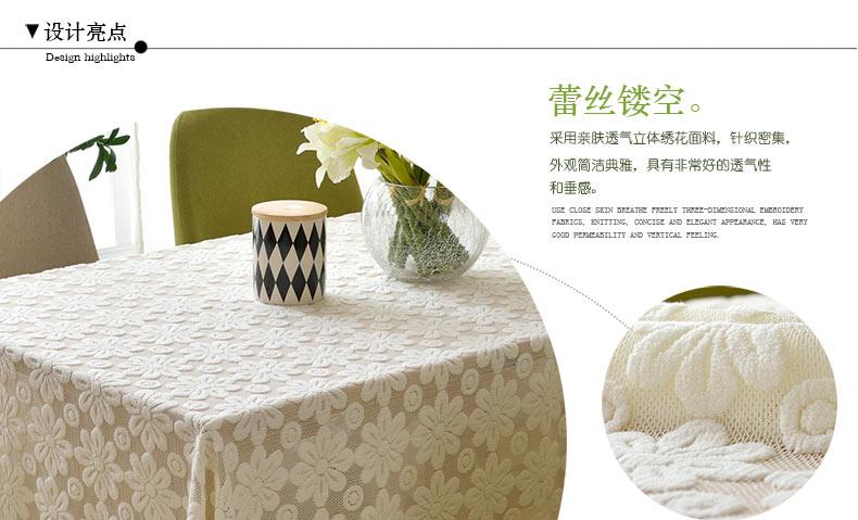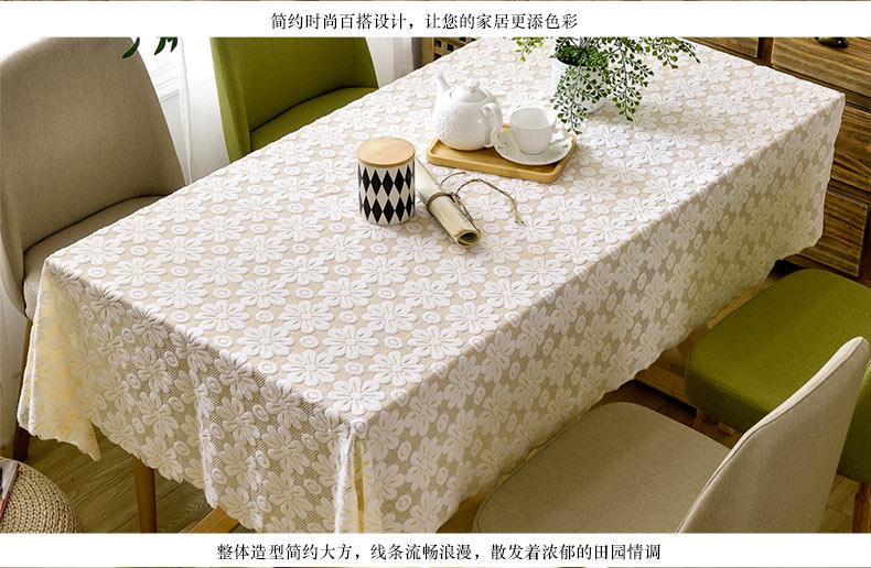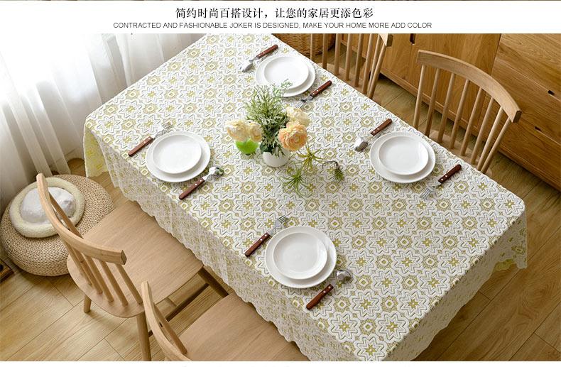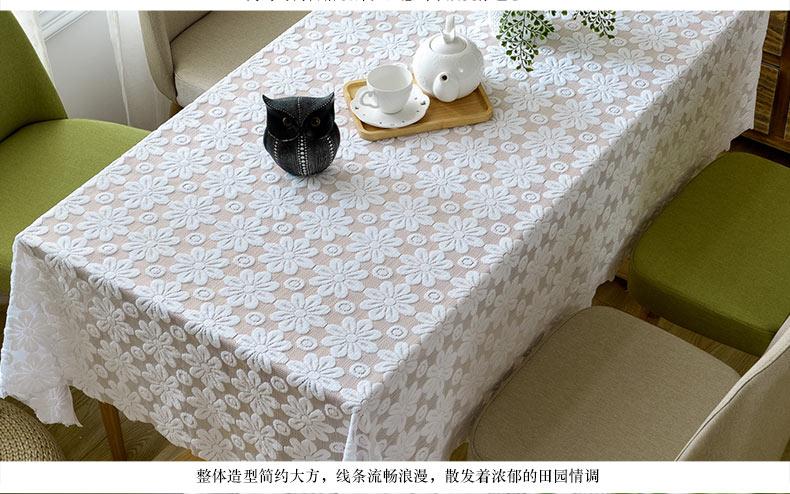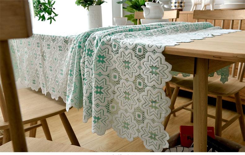Mantel de mesa de centro con encaje, mantel de comedor rectangular de tela, estilo europeo, redondo, de lino y algodón, estilo fresco para el hogar.