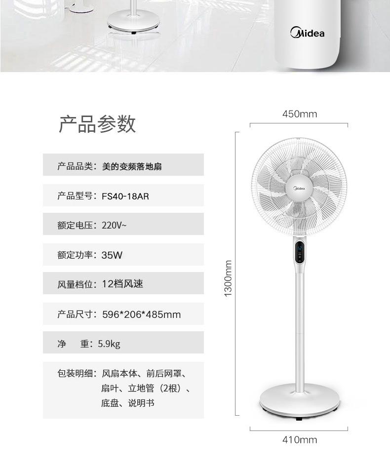 Ventilador eléctrico Midea FS40-18AR con control remoto, conversión de frecuencia, ventilador de piso, escritorio inteligente para el hogar, ventilador vertical para dormitorio