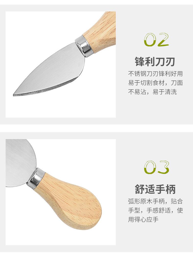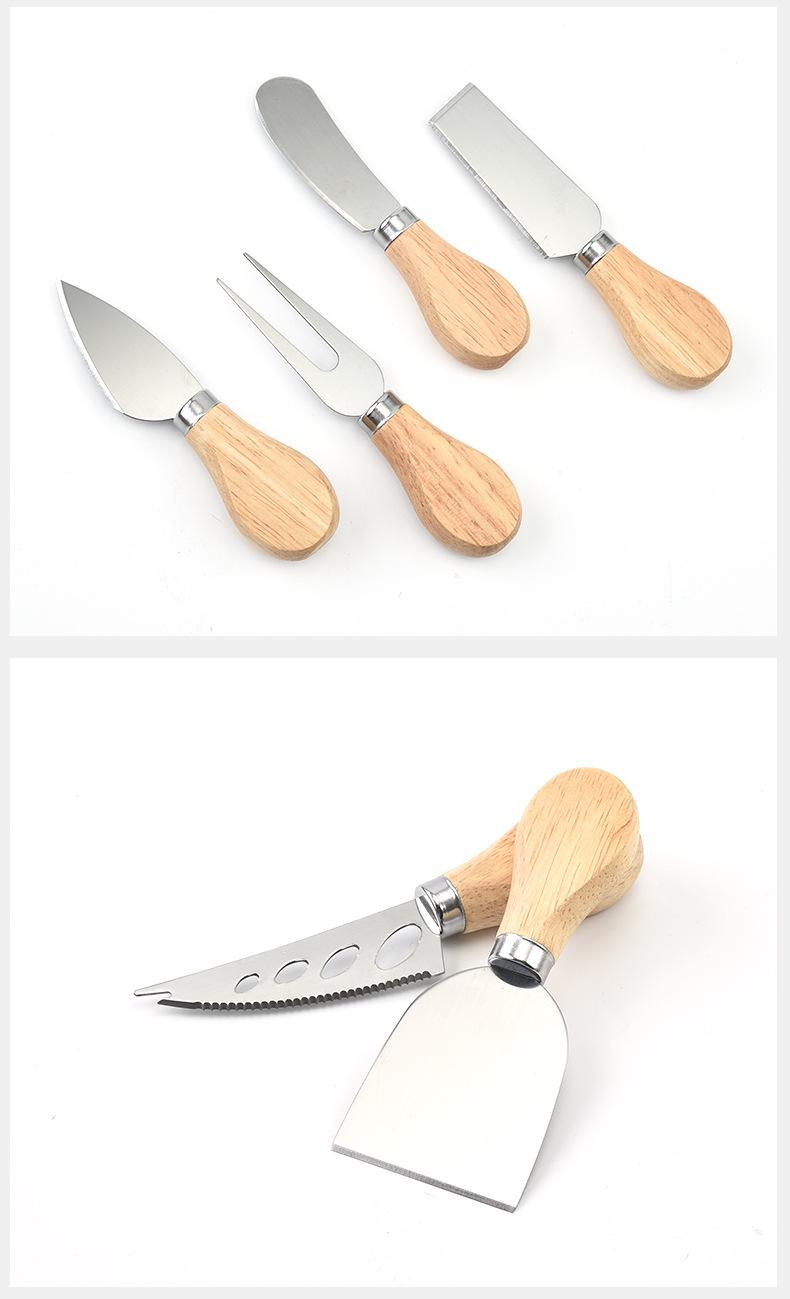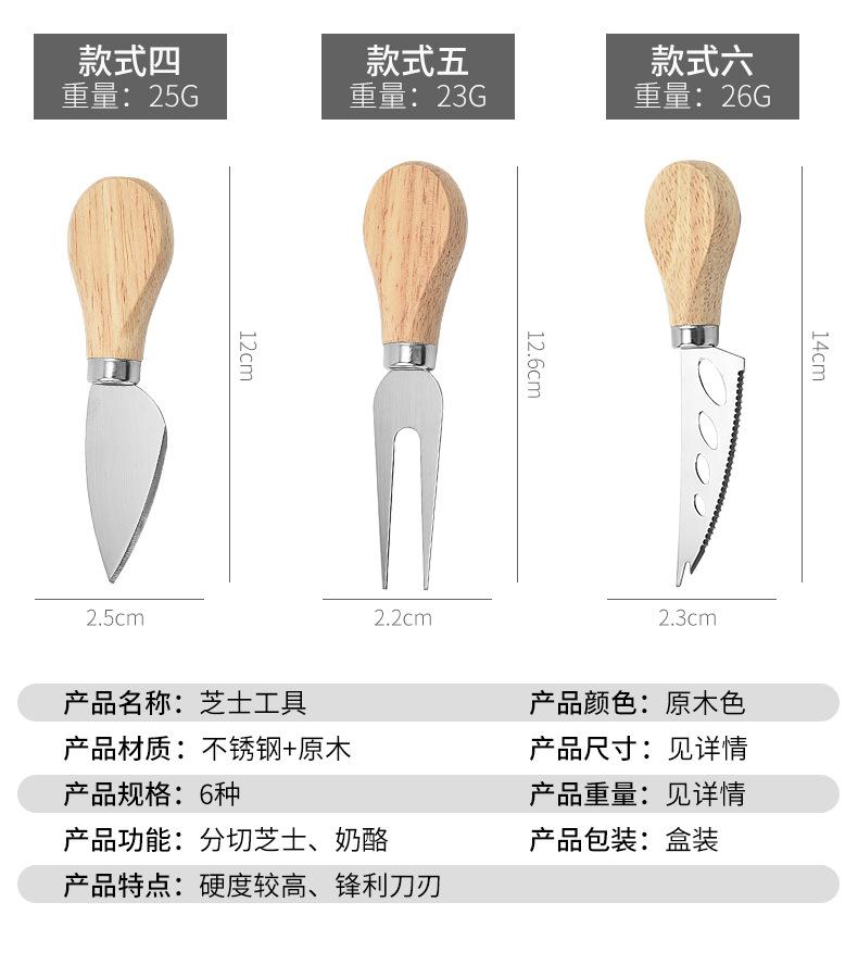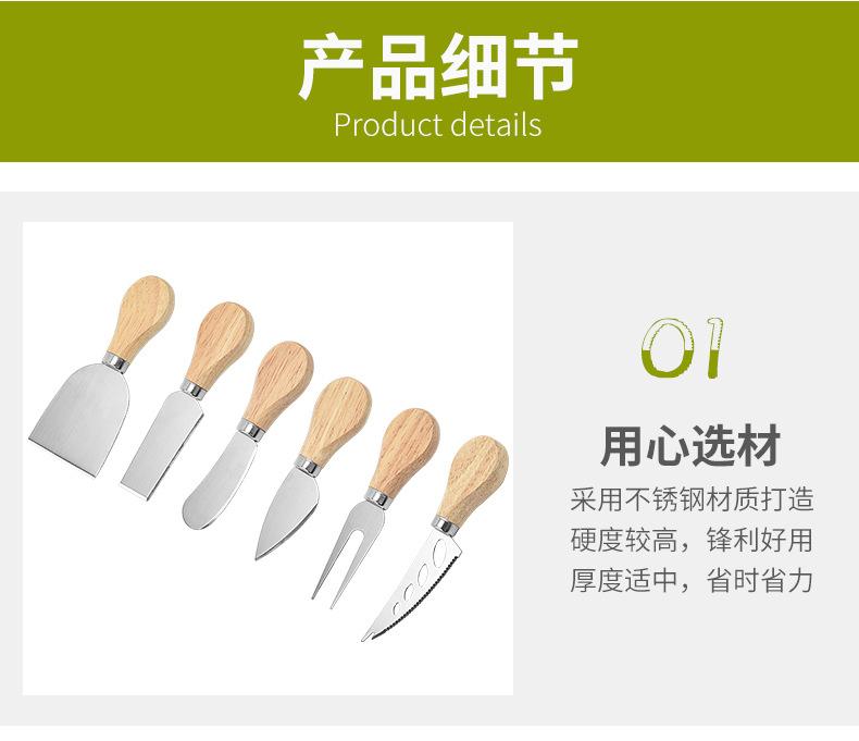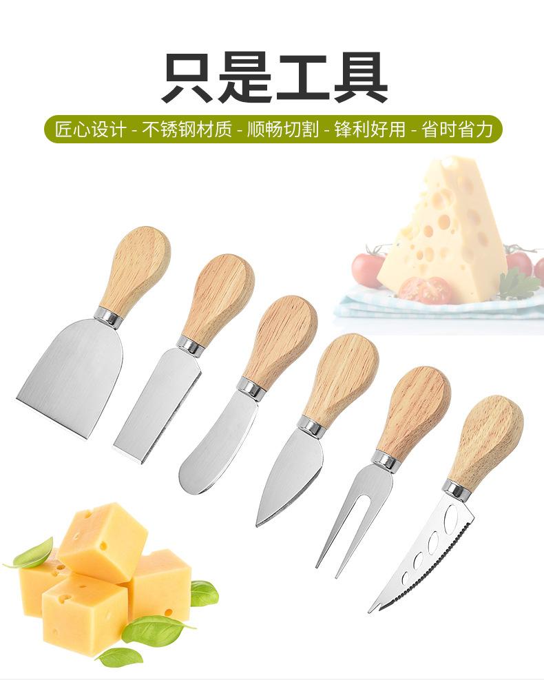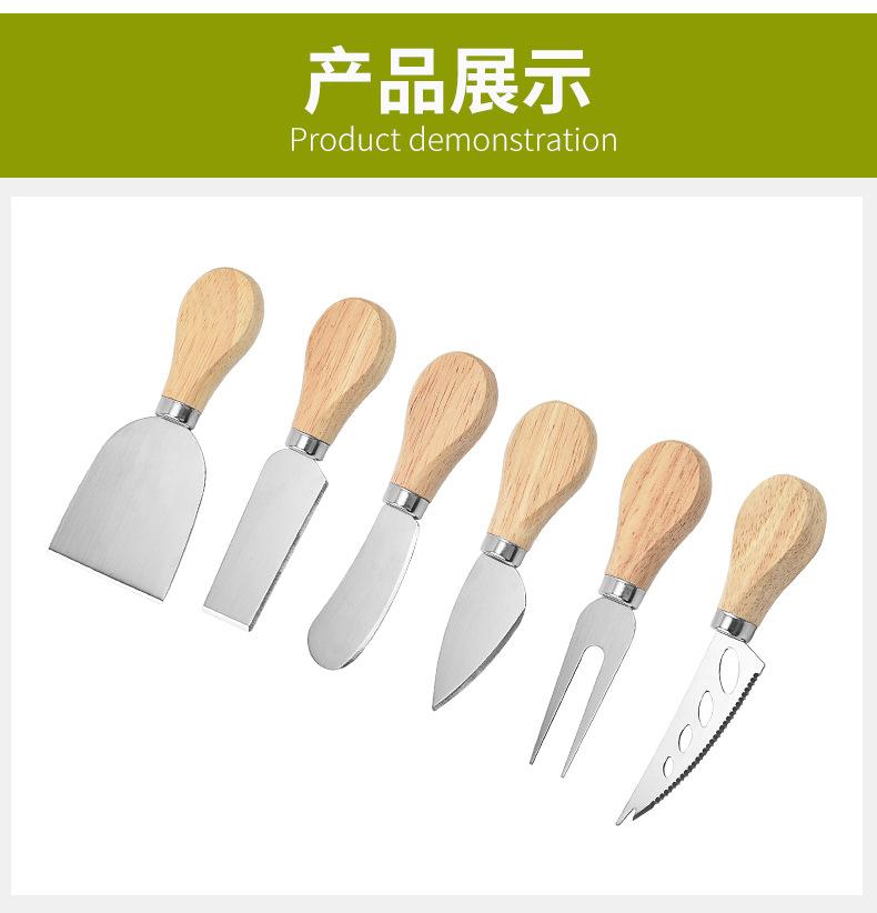 Fabricante al por mayor de cuchillos para queso, juego de 6 piezas, cuchillo para queso de acero inoxidable, mango de madera, cuchillo y tenedor para mantequilla, juego de herramientas para hornear