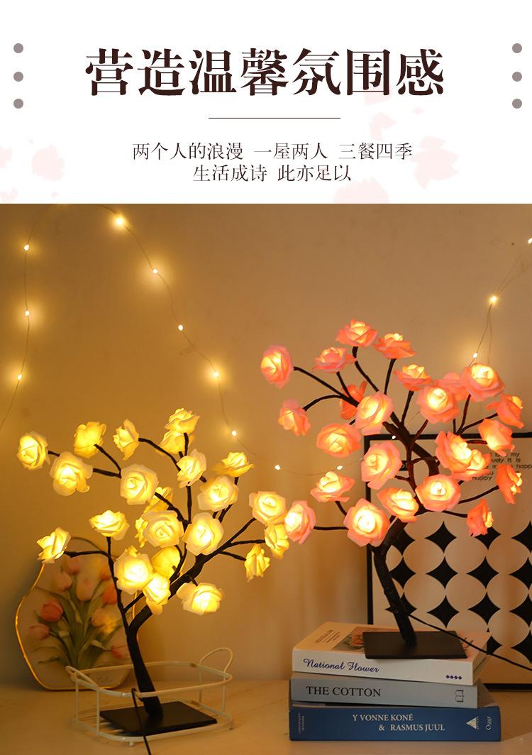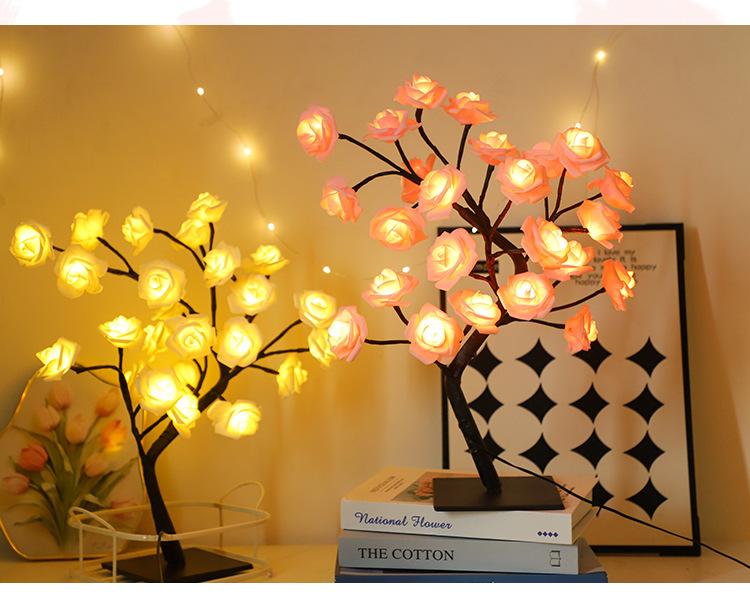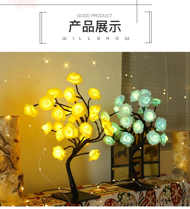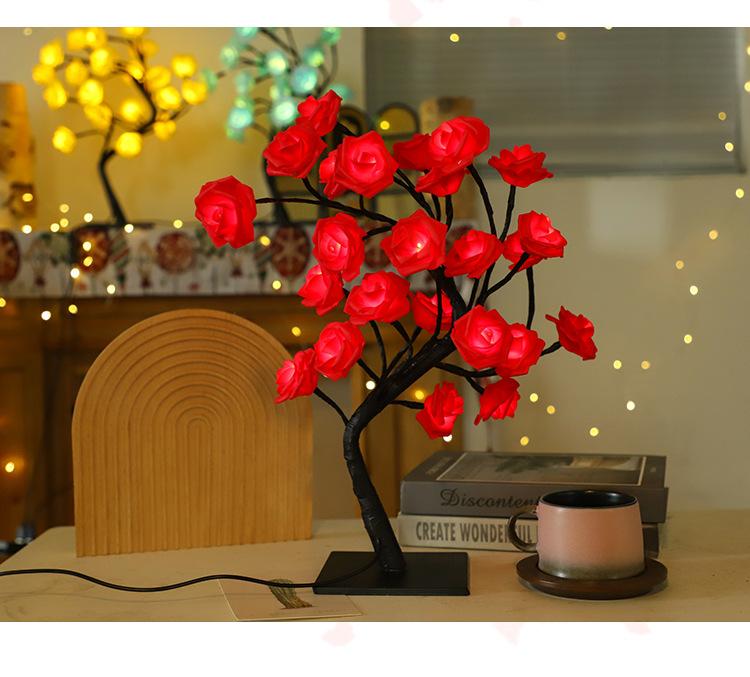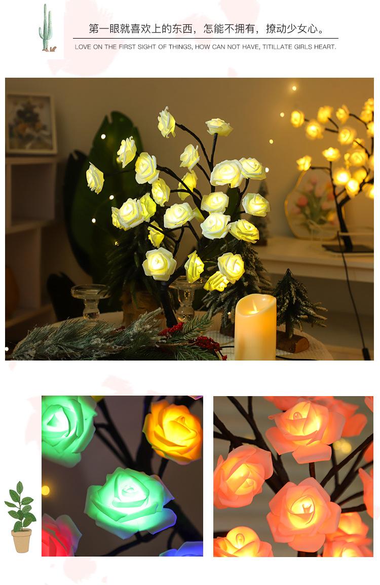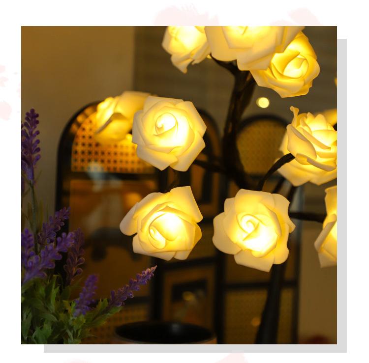 Luces LED transfronterizas para árbol de rosas, luces navideñas, lámpara de mesa pequeña desmontable, luz de noche decorativa para el Día de San Valentín