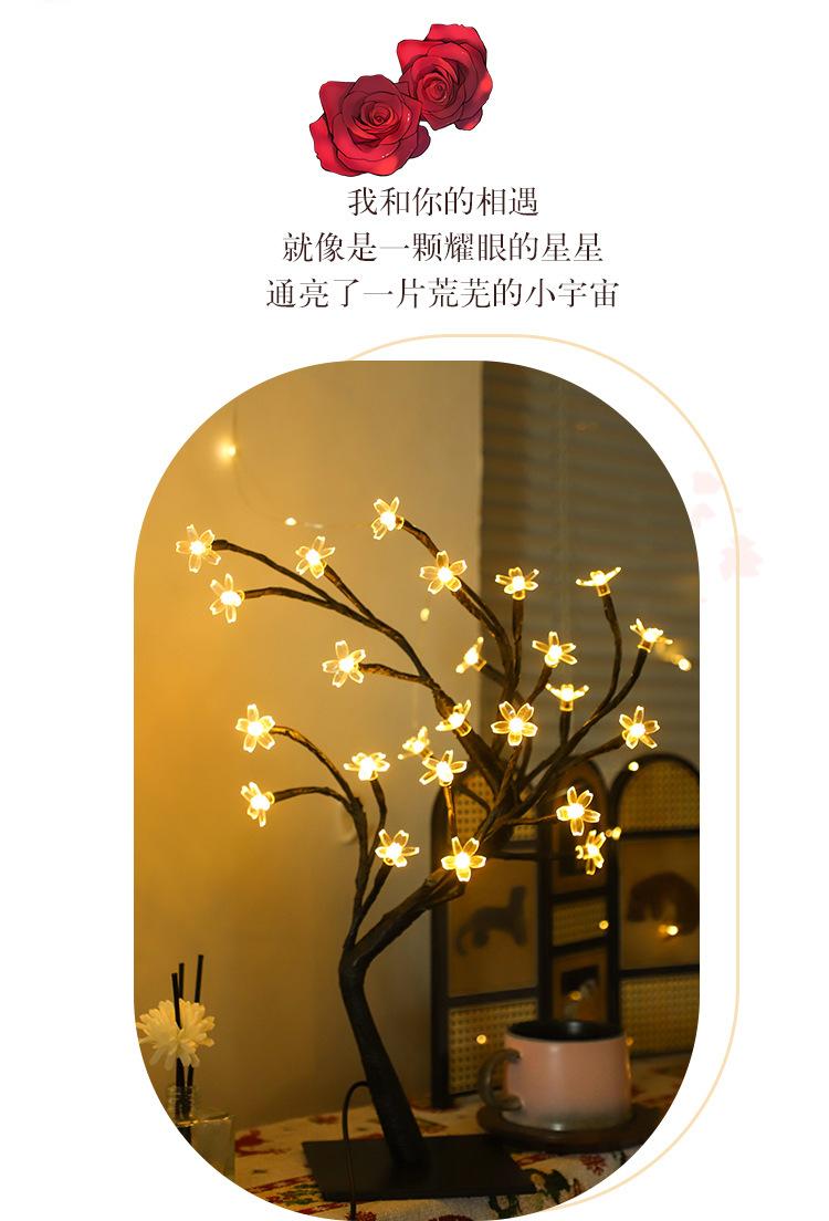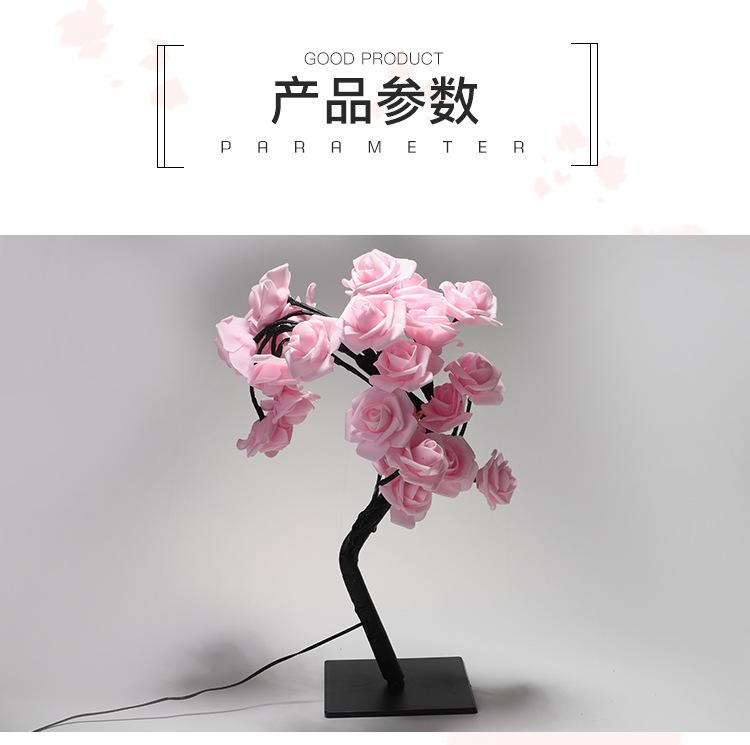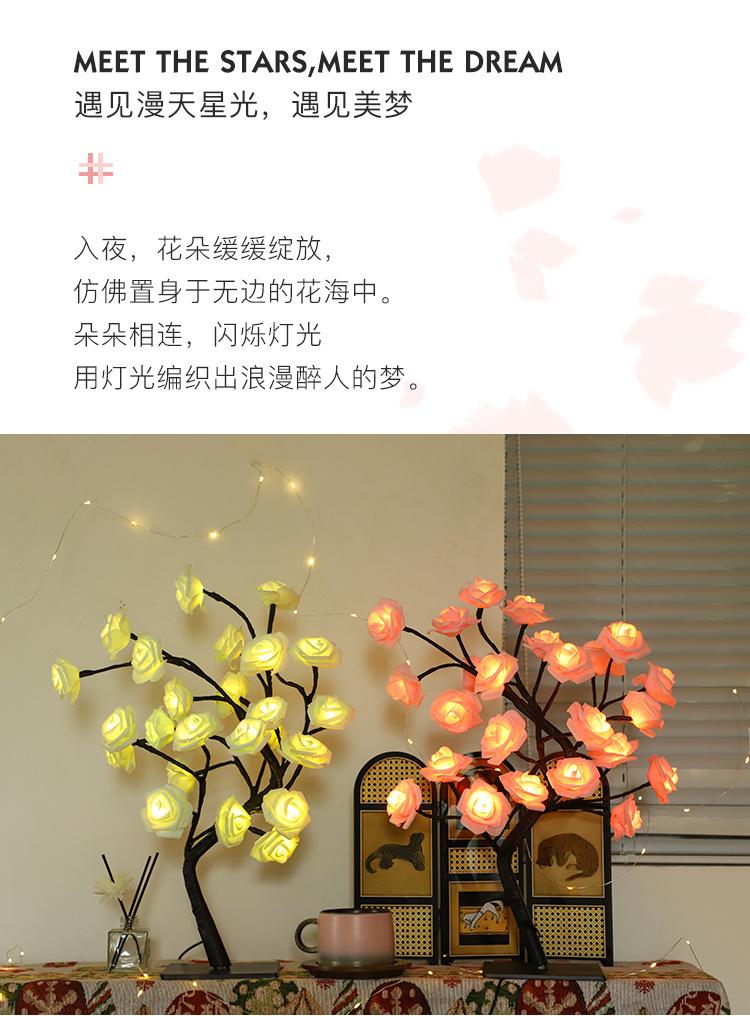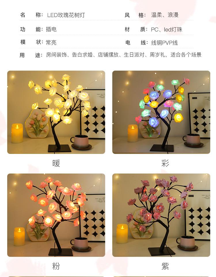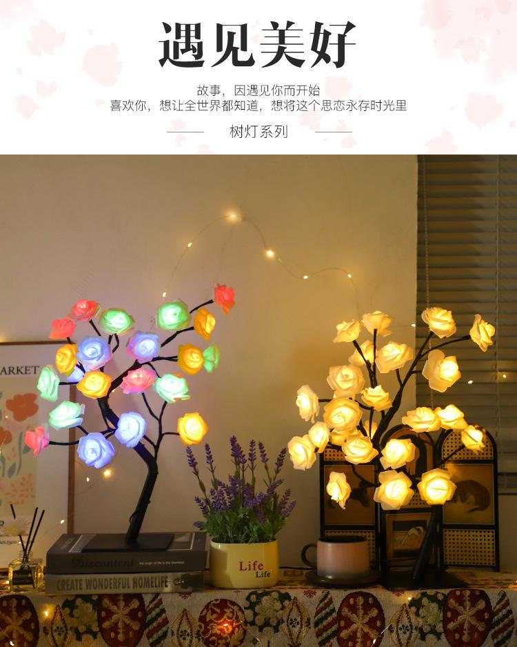 Luces LED transfronterizas para árbol de rosas, luces navideñas, lámpara de mesa pequeña desmontable, luz de noche decorativa para el Día de San Valentín