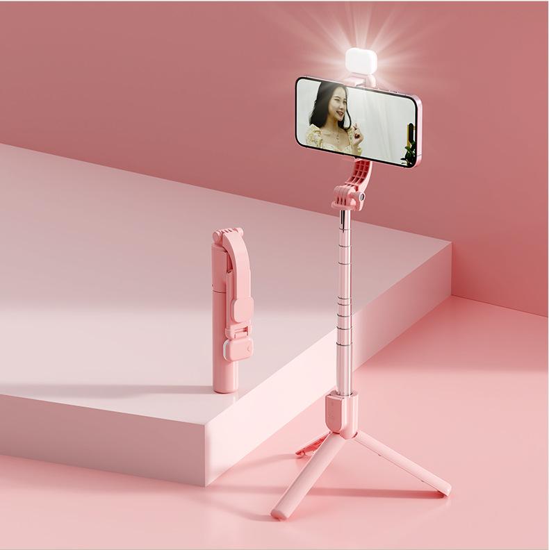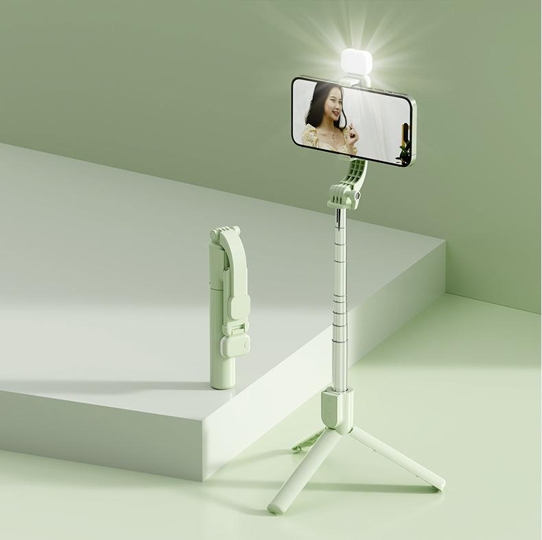 Popular Palo Selfie Bluetooth para Teléfono Móvil Multifuncional Transmisión en Vivo Foto Luz de Relleno Plegable Todo en Uno Trípode Soporte para Teléfono Móvil