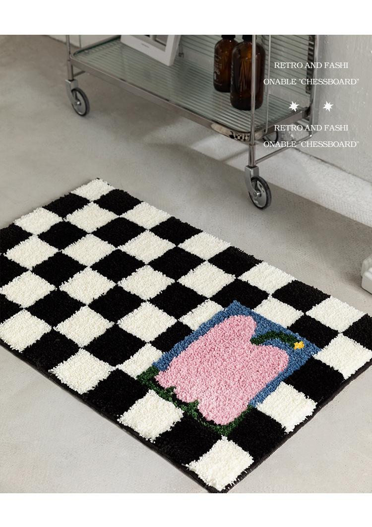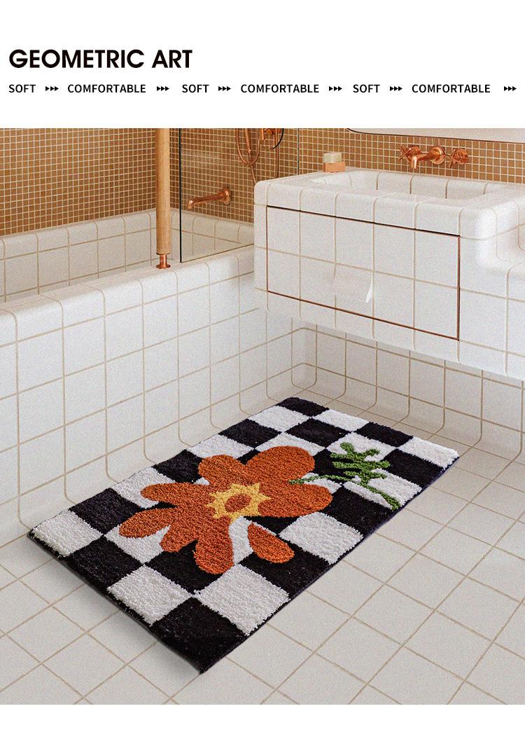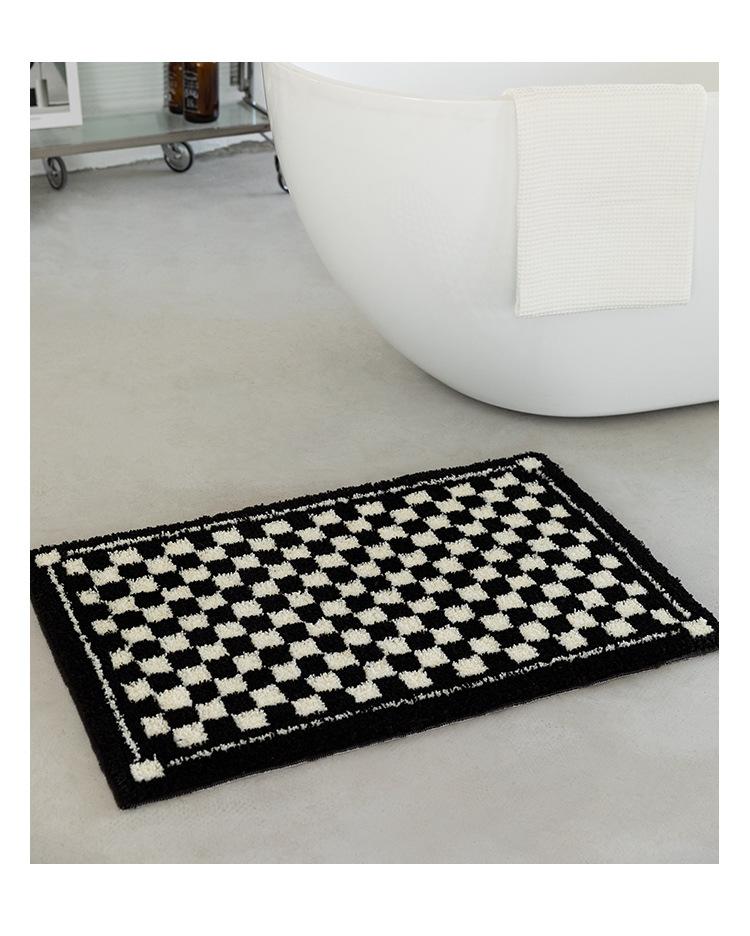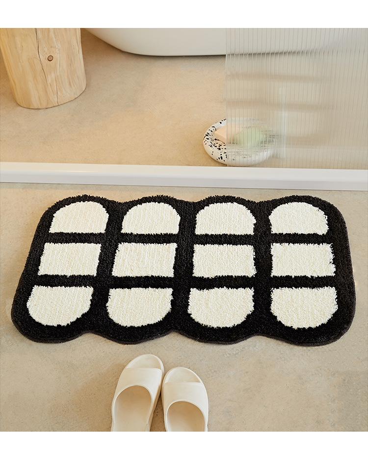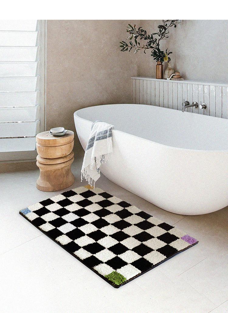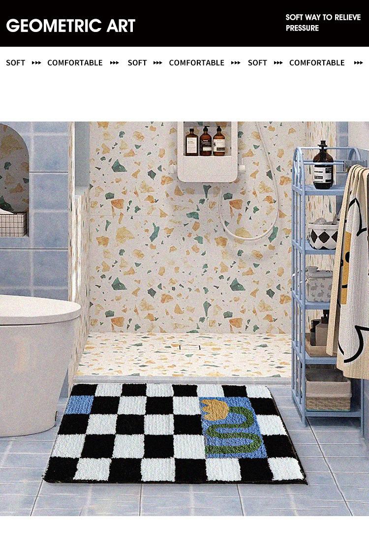 Estilo Ins Alfombra de Pie para Inodoro de Celosía Blanca y Negra Alfombra Antideslizante Alfombra Absorbente para Baño Alfombra para Puerta de Inodoro Alfombra para Piso de Inodoro