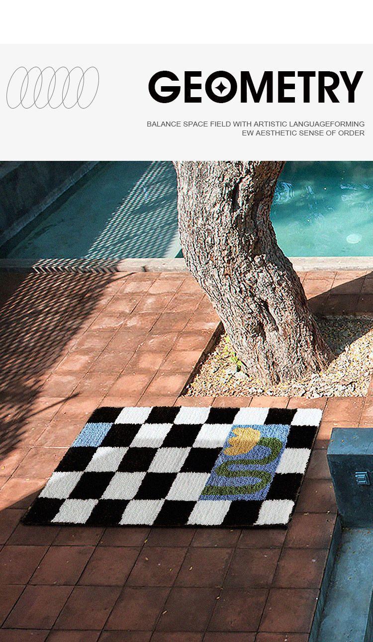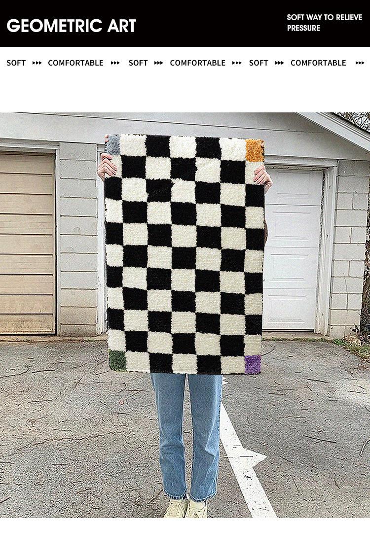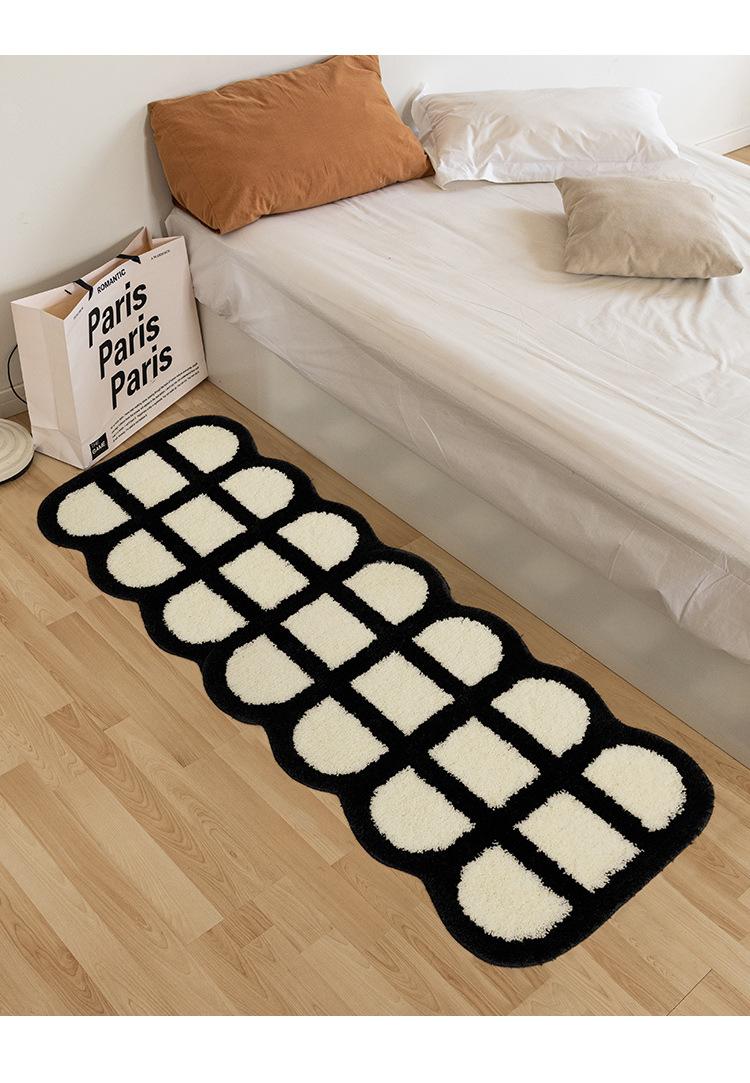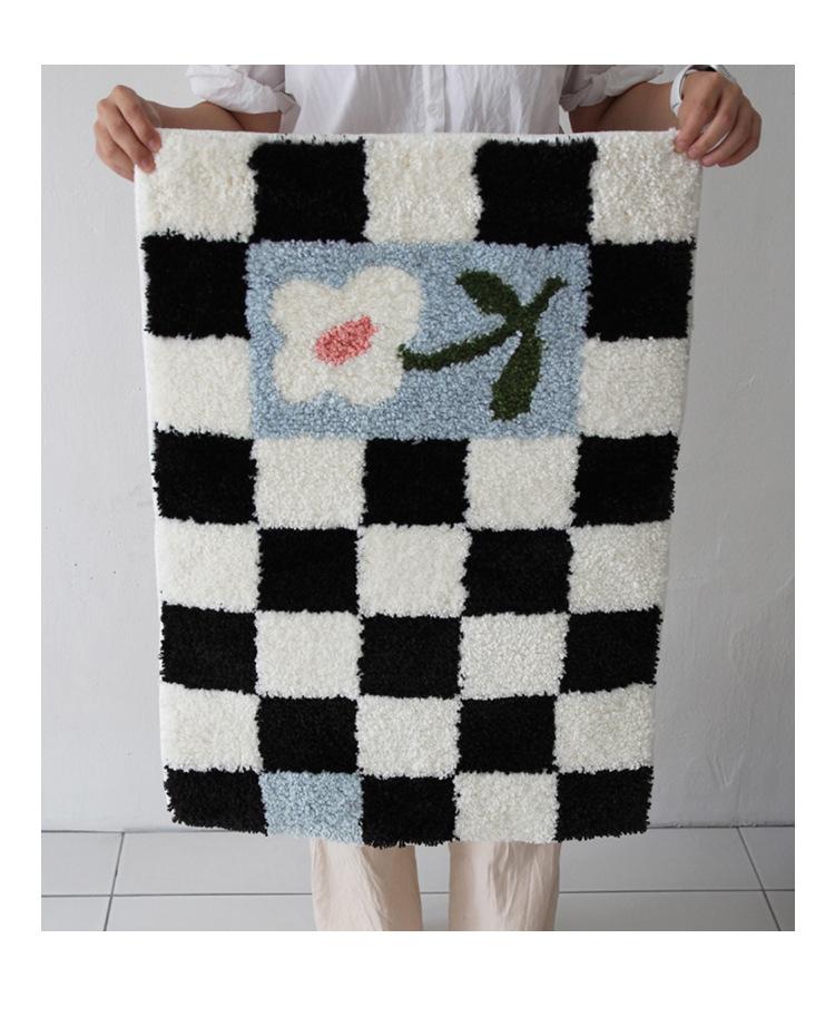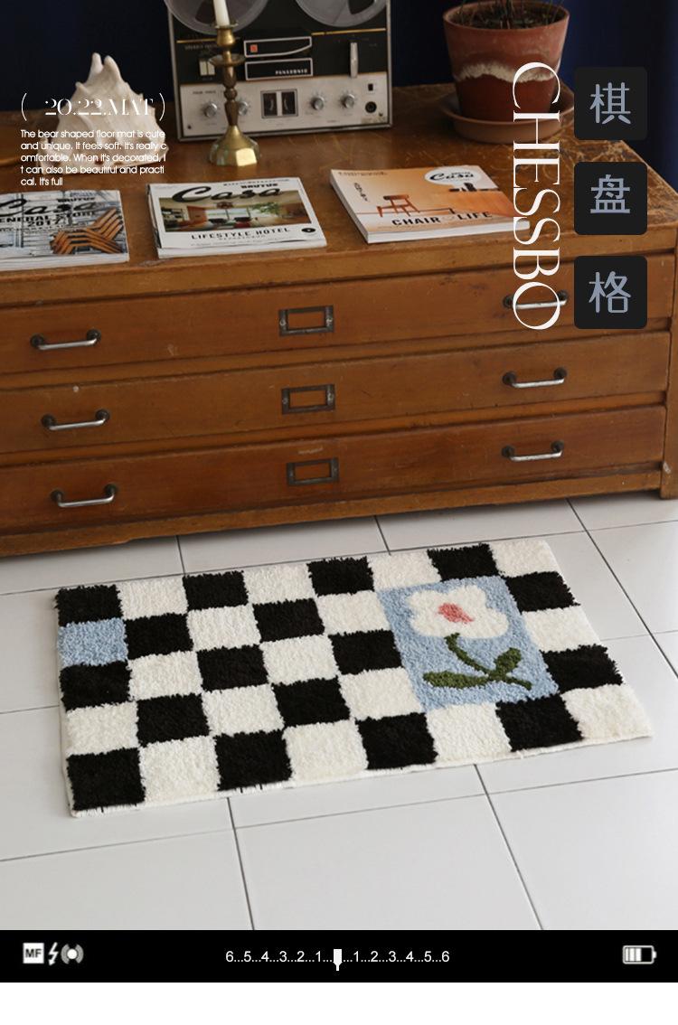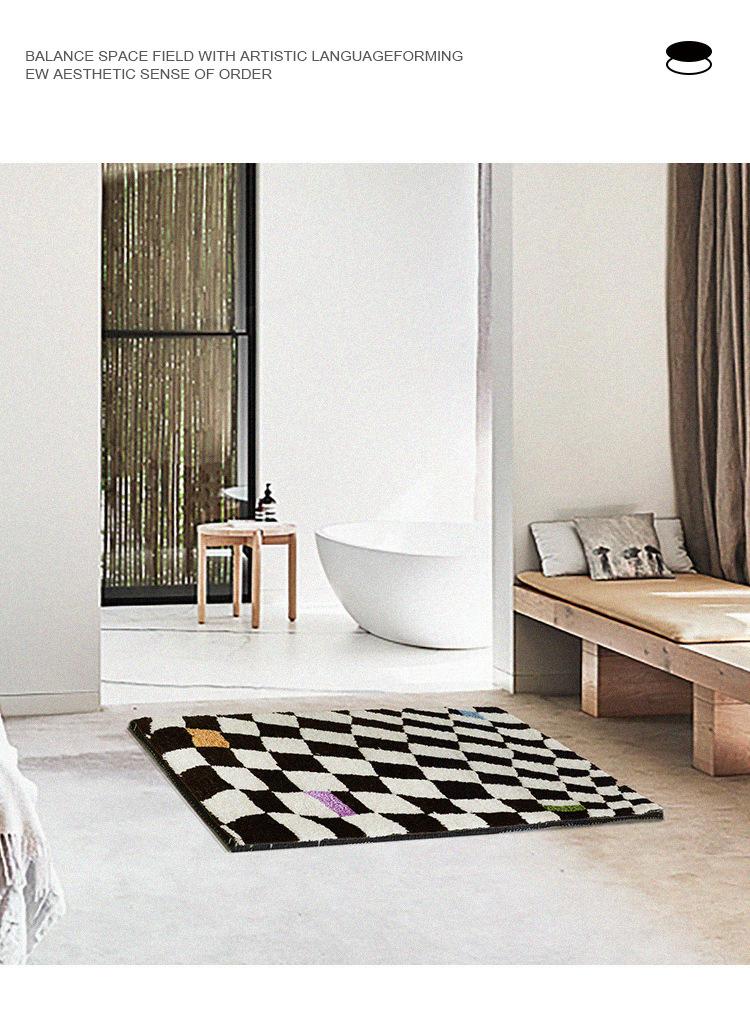 Estilo Ins Alfombra de Pie para Inodoro de Celosía Blanca y Negra Alfombra Antideslizante Alfombra Absorbente para Baño Alfombra para Puerta de Inodoro Alfombra para Piso de Inodoro