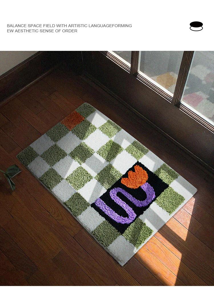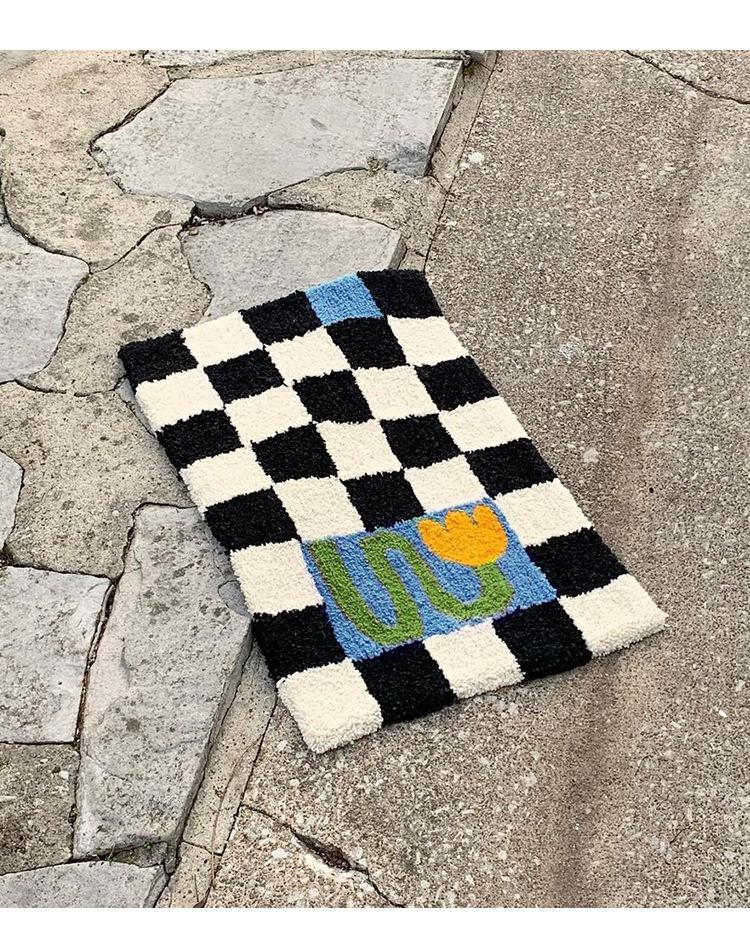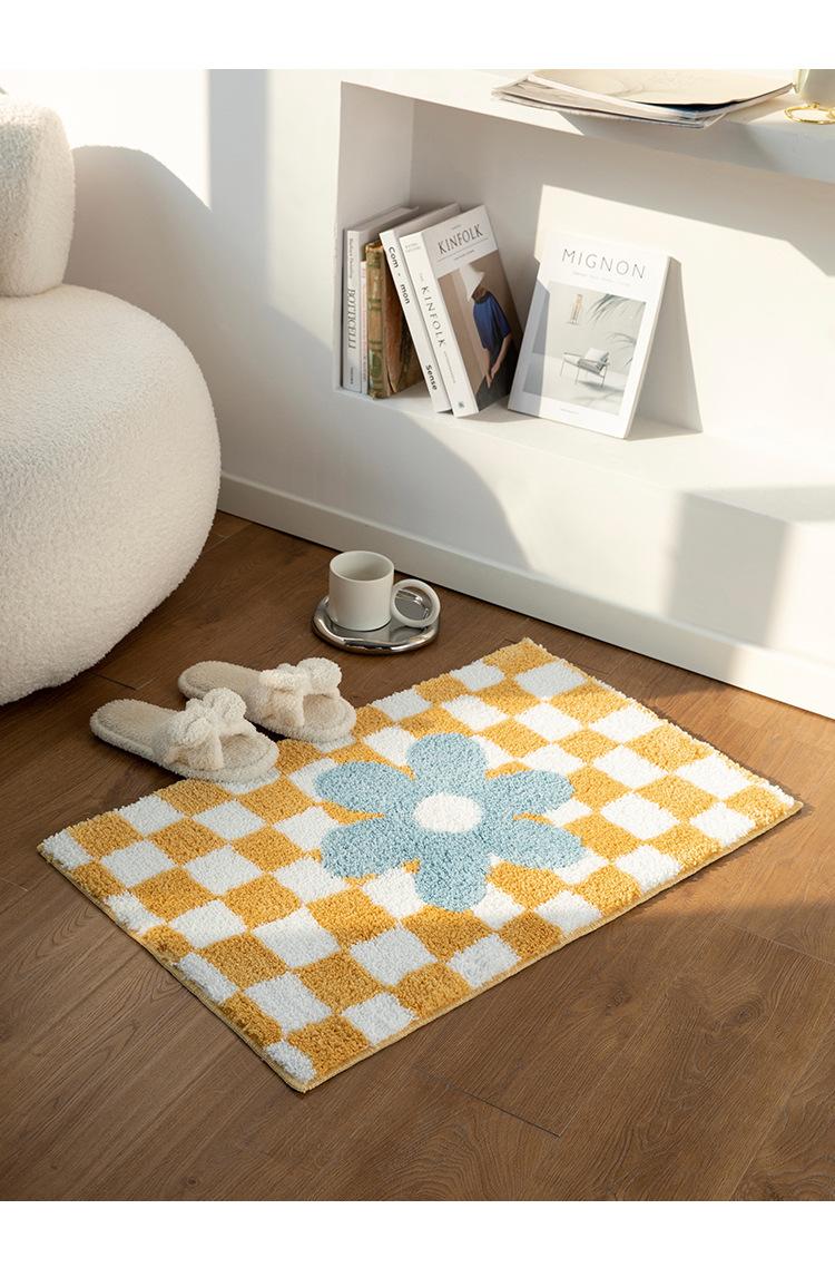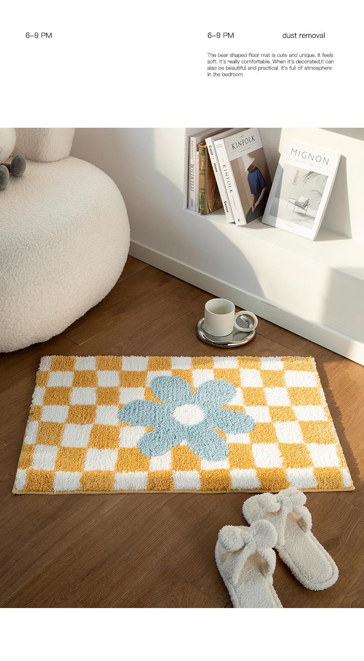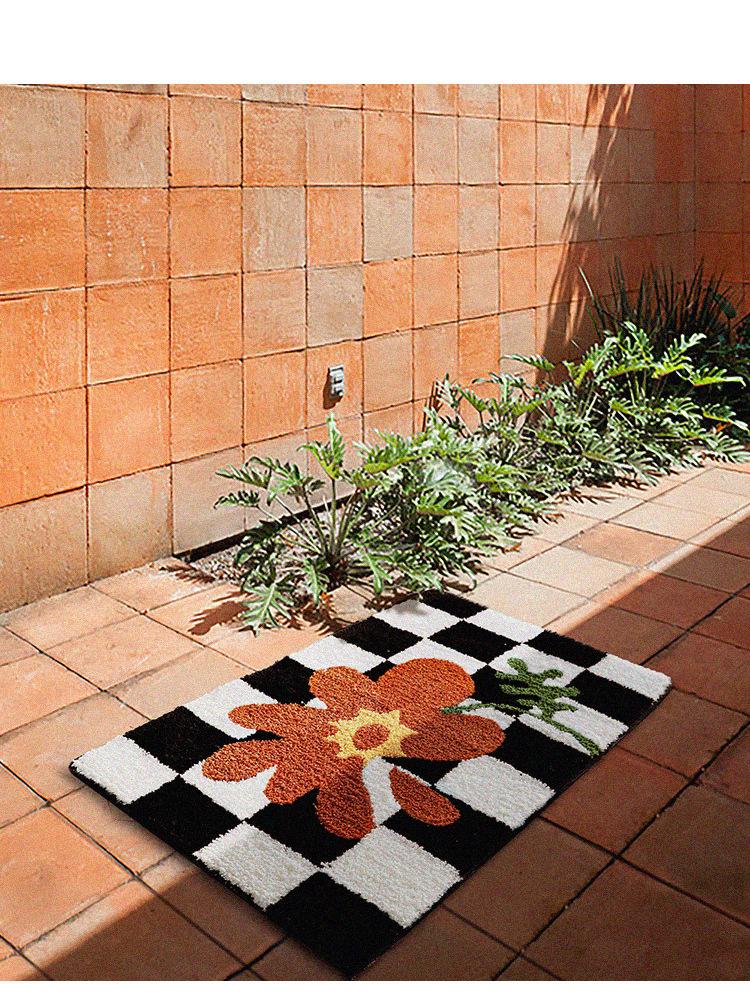 Estilo Ins Alfombra de Pie para Inodoro de Celosía Blanca y Negra Alfombra Antideslizante Alfombra Absorbente para Baño Alfombra para Puerta de Inodoro Alfombra para Piso de Inodoro
