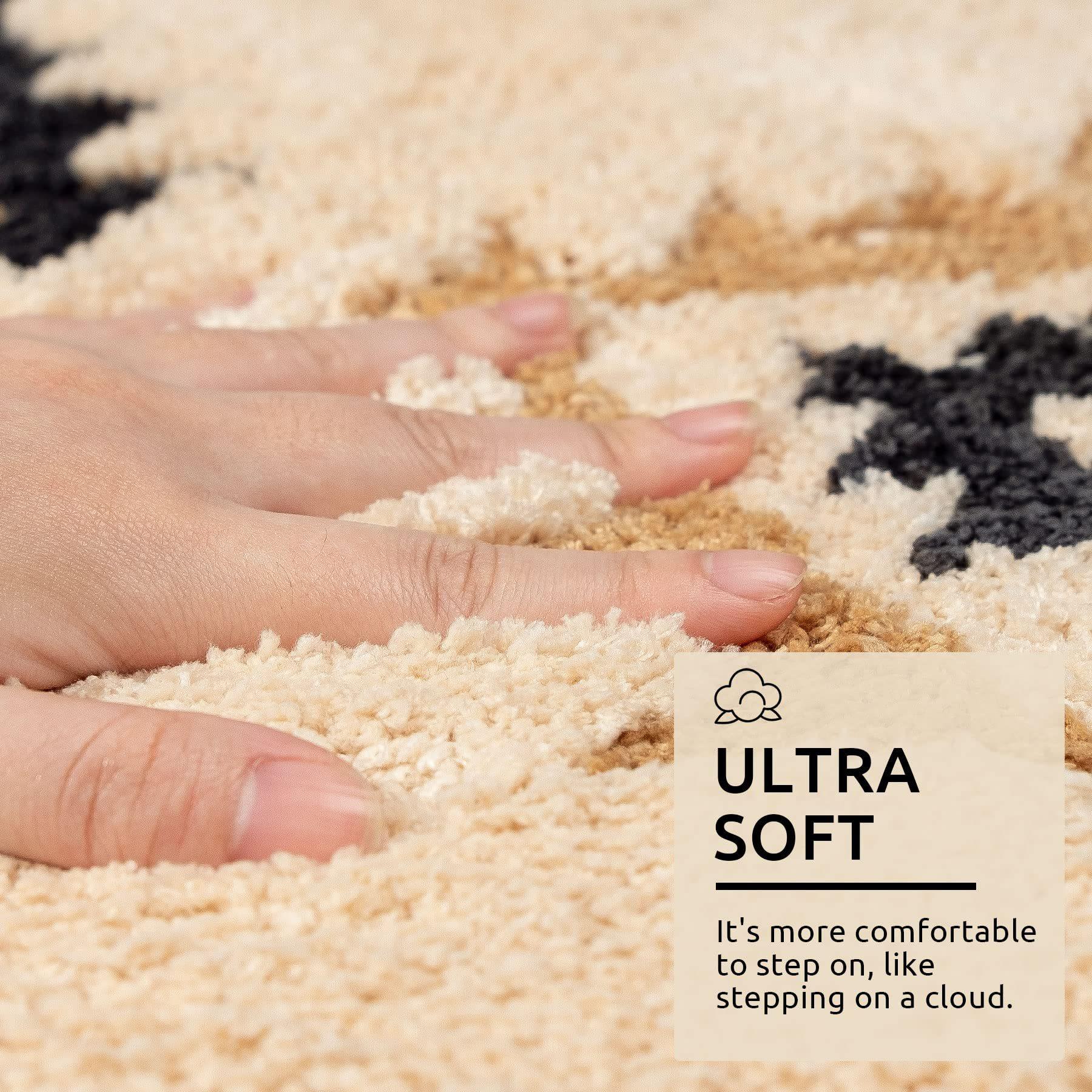 Alfombra de Felpa Antideslizante Absorbente de Agua Estilo Bohemio Transfronterizo Alfombra para Piso Alfombra de Noche para Dormitorio Blanco Luz de Piso Estilo Lujoso