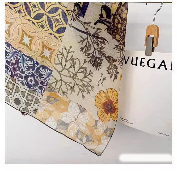 Nueva bufanda cuadrada estampada de algodón vintage de 70 cm, bufanda combinable para primavera y otoño, pañuelo para la cabeza de moda, bufanda pequeña decorativa, bufanda de seda.