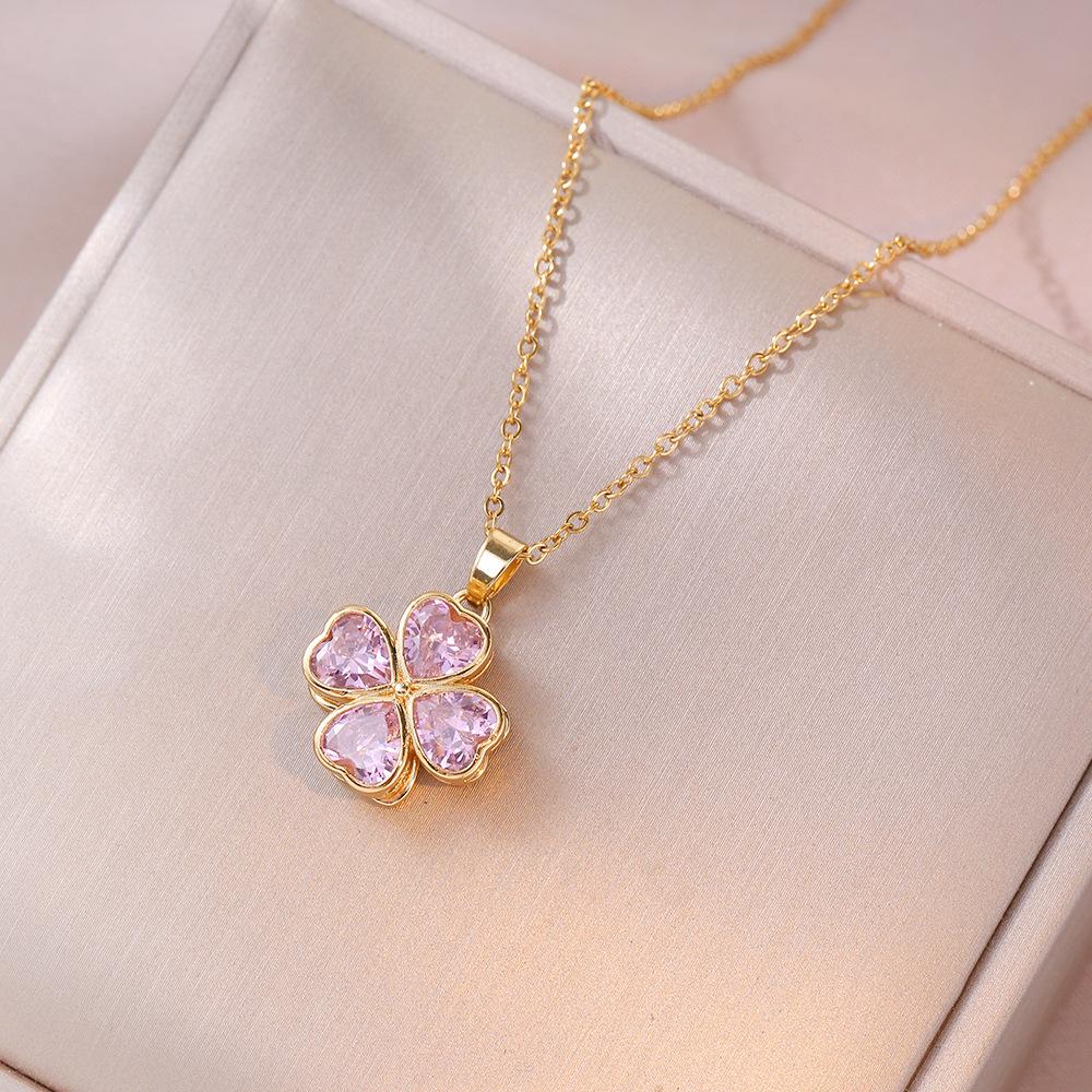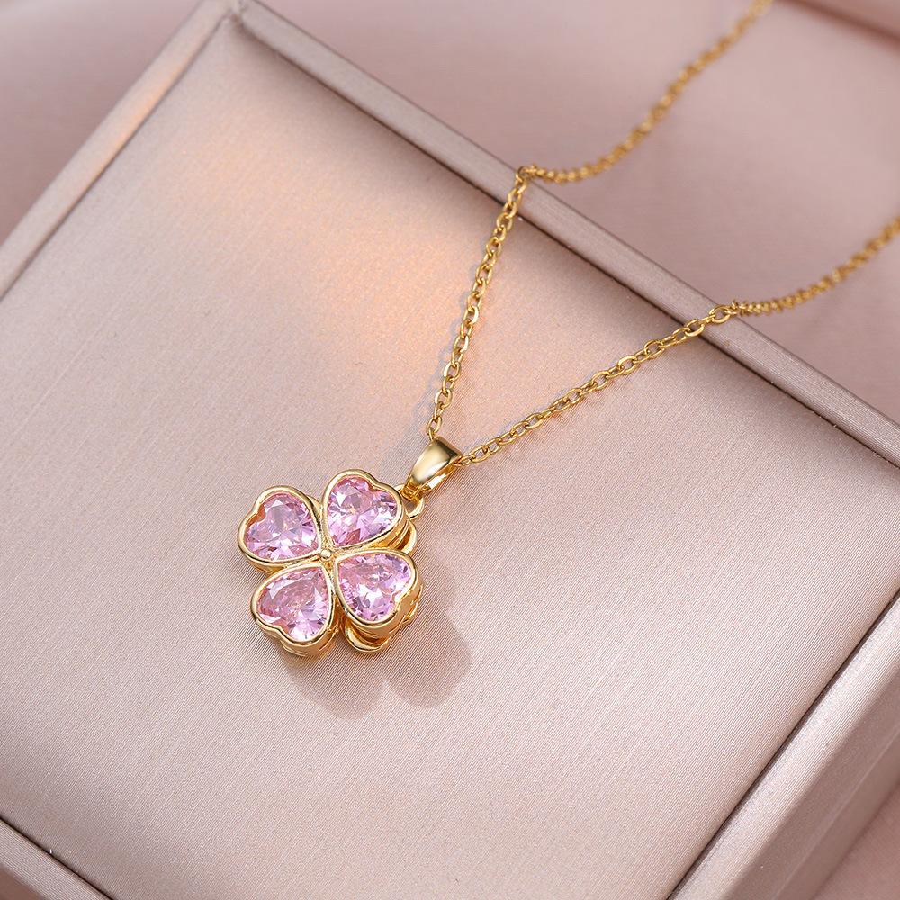 Collar para Mujer Transfronterizo Amor Rosa Colgante de Zirconia Moda Elegante Simple Versátil Cadena de Corazón Giratorio Traje