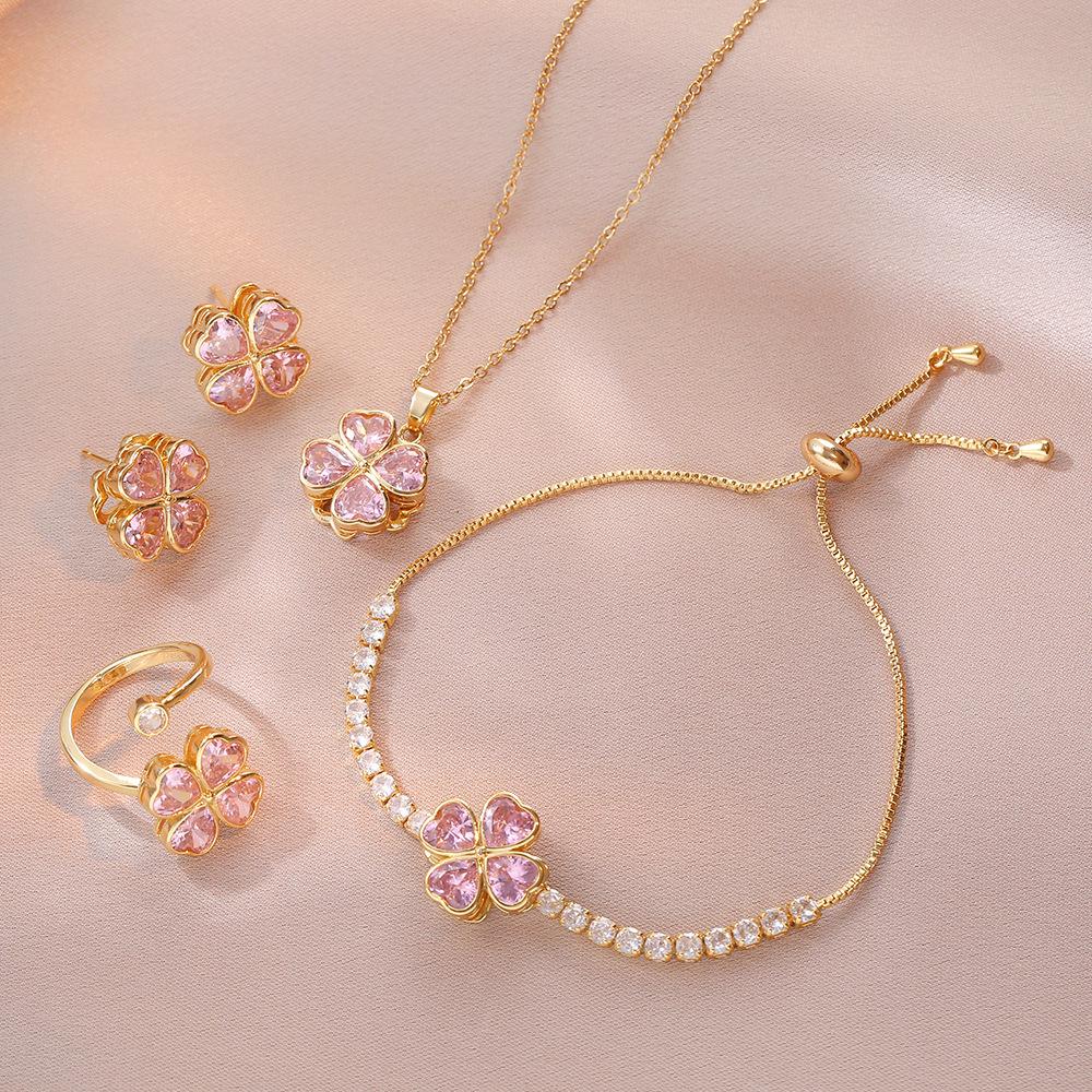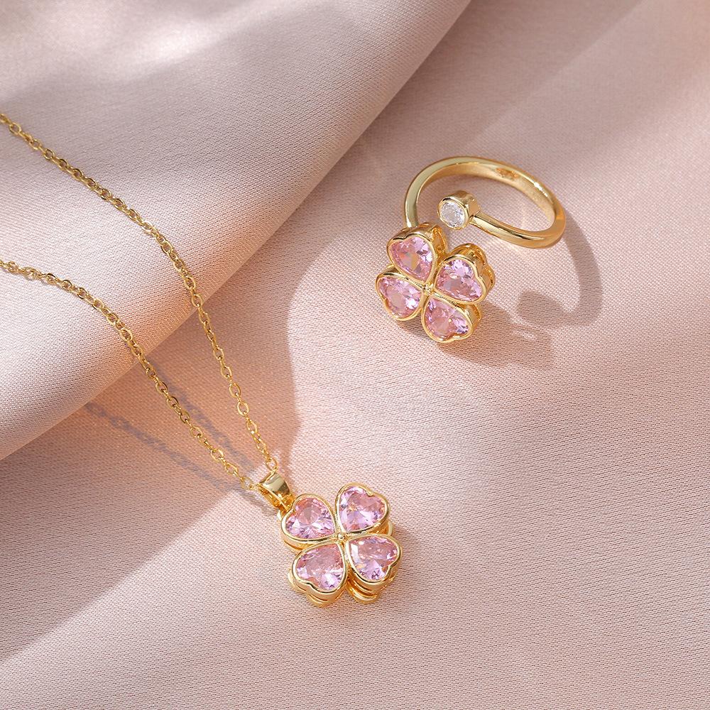 X3339 pink rotating necklace, J0279 pink rotating ring, E1096 pink rotating earrings, Ts0287 pink rotating bracelet