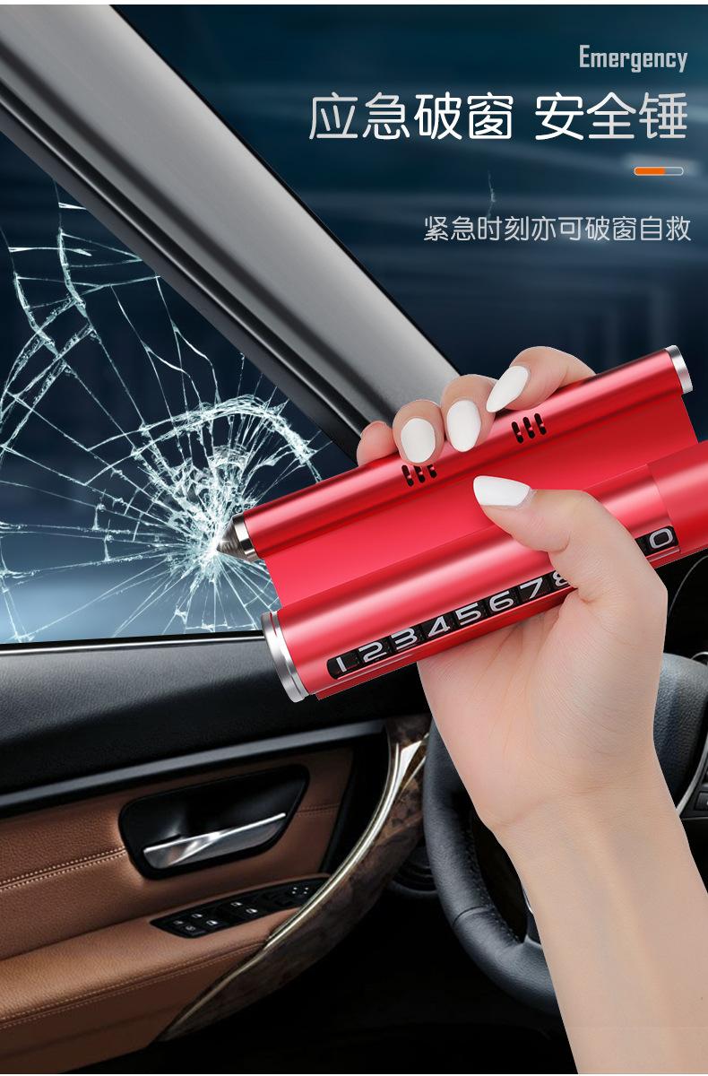 Martillo de seguridad metálico para coche cuatro en uno rompe ventanas de coche martillo de escape multifuncional cortador de cinturón de seguridad coche en movimiento placa temporal