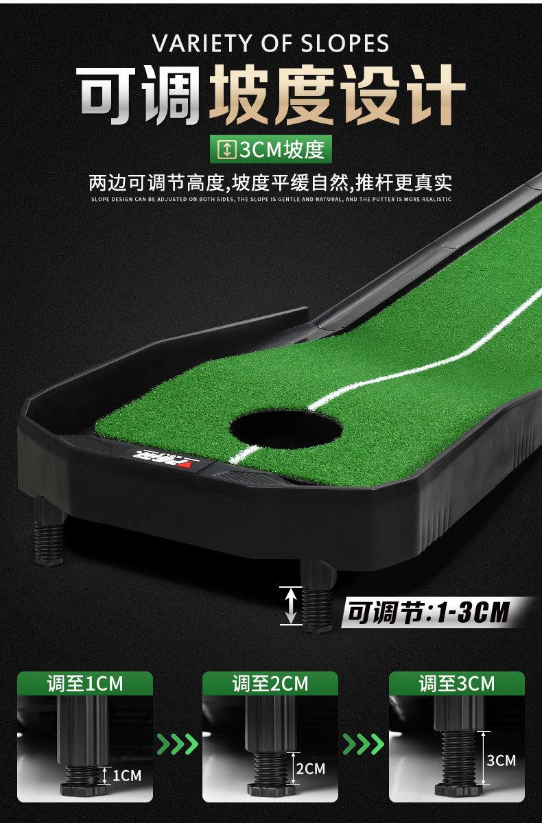 Pendiente ajustable (1-3cm), la pendiente es naturalmente suave, lo que permite practicar el putt de diferentes dificultades