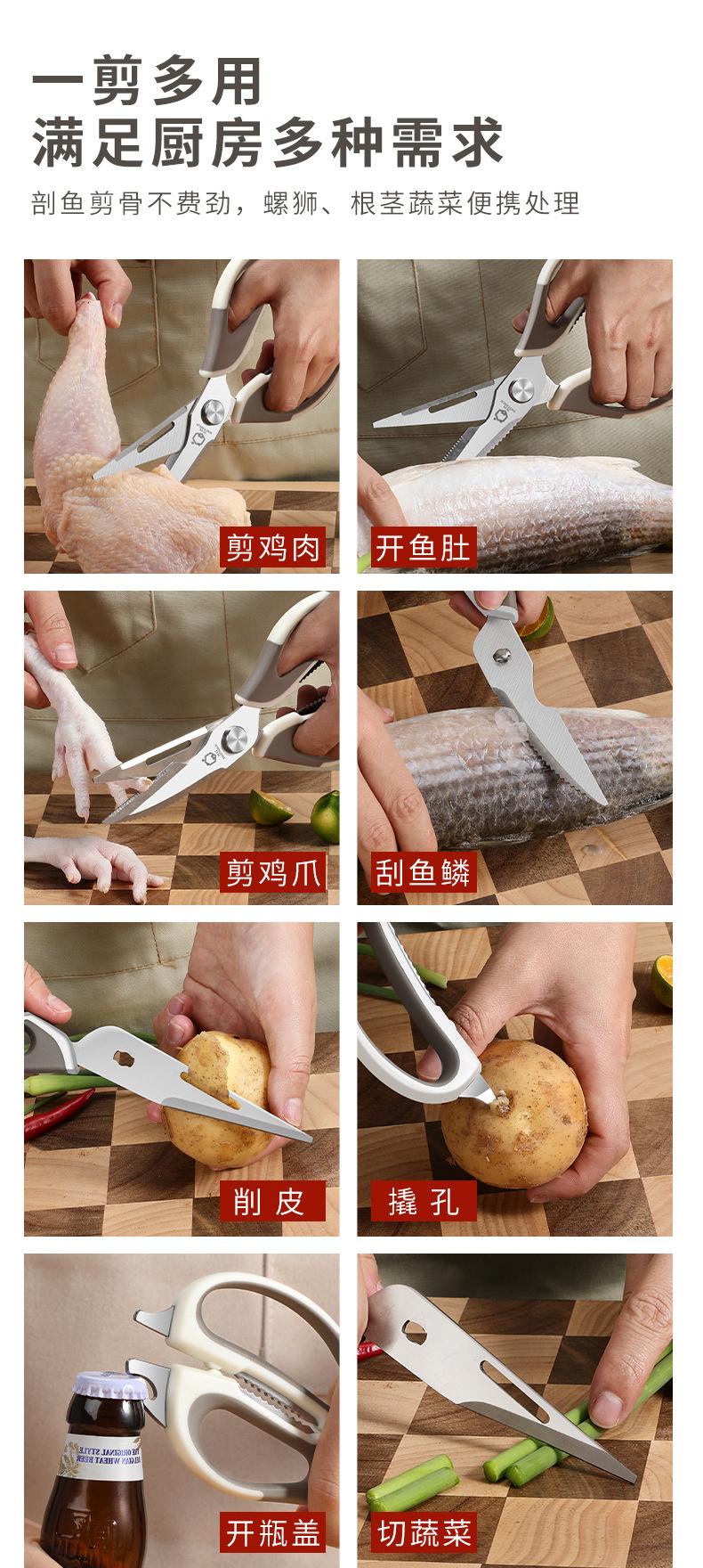 Tijeras de acero inoxidable de fábrica directas, tijeras de cocina para hueso de pollo, tijeras multifuncionales para barbacoa y alimentos para el hogar.